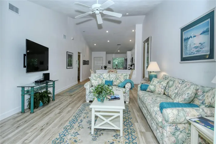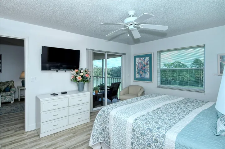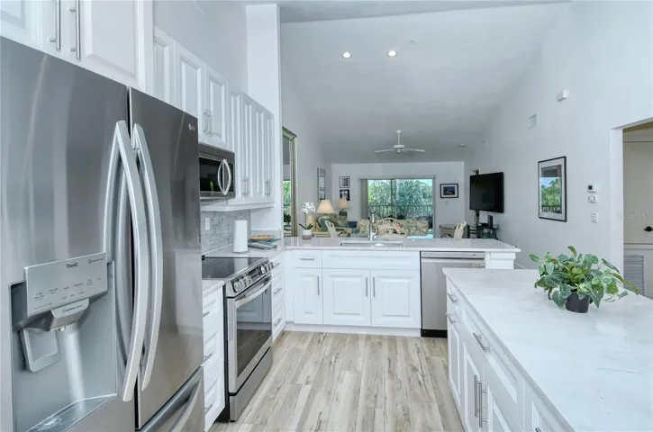 RENTED JAN., FEB., MARCH, 2026 – available APRIL THRU DECEMBER 2026: BEAUTIFULLY UPDATED: Enjoy the view across the golf course from the screened lanai of this exceptional 3rd-floor vacation condo at the Terraces of Stoneybrook, NEW KITCHEN, NEW APPLIANCES, NEWLY REMODELED BATHROOMS, NEW FLOORING – It’s stunning. Play golf, hit the tennis courts, take a dip in the crystal clear heated pool or enjoy a game of pickleball, it’s all here waiting for you. The large master suite with sliding glass doors out onto the lanai has a king-sized bed and en-suite has been upgraded and has walk-in shower. The guest bedroom has twin beds and an adjacent guest bathroom. This bright and cheerful interior with spacious high ceilings offers over 1200 sq. ft. of living space. The condo is well furnished and is equipped with flat-screen smart TVs and internet access. Stoneybrook Golf & Country Club has undergone a Kipp Schultes designed golf modernization, and is said to be one of the best courses on the West Coast of Florida. Enjoy Har-Tru tennis courts, bocce ball, fitness center, pro shop, full-service restaurant, bar, and outdoor patio and is centrally located in Palmer Ranch close to area beaches, shopping, restaurants, and Costco and the Legacy walking and biking trail are nearby. The golf membership transfers (inquire about the new fee schedule) if desired or you can take out a social membership for a nominal fee and enjoy all the country club has to offer without golf.