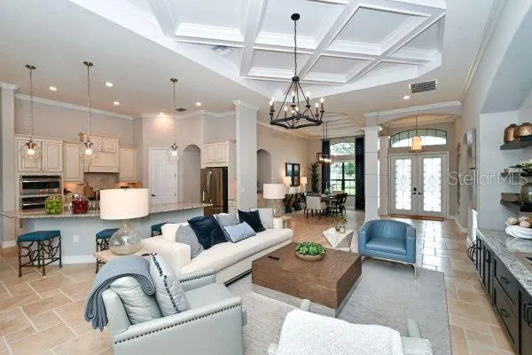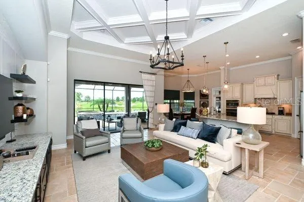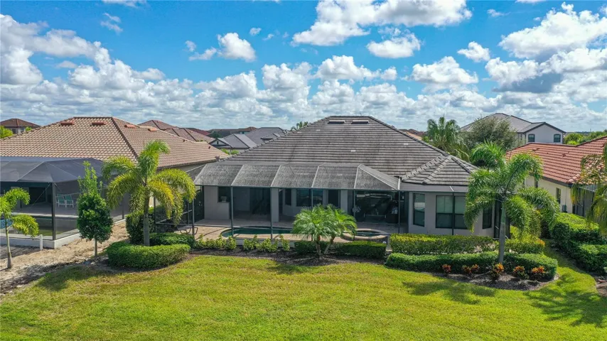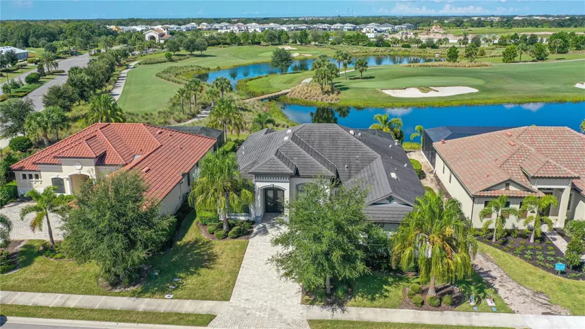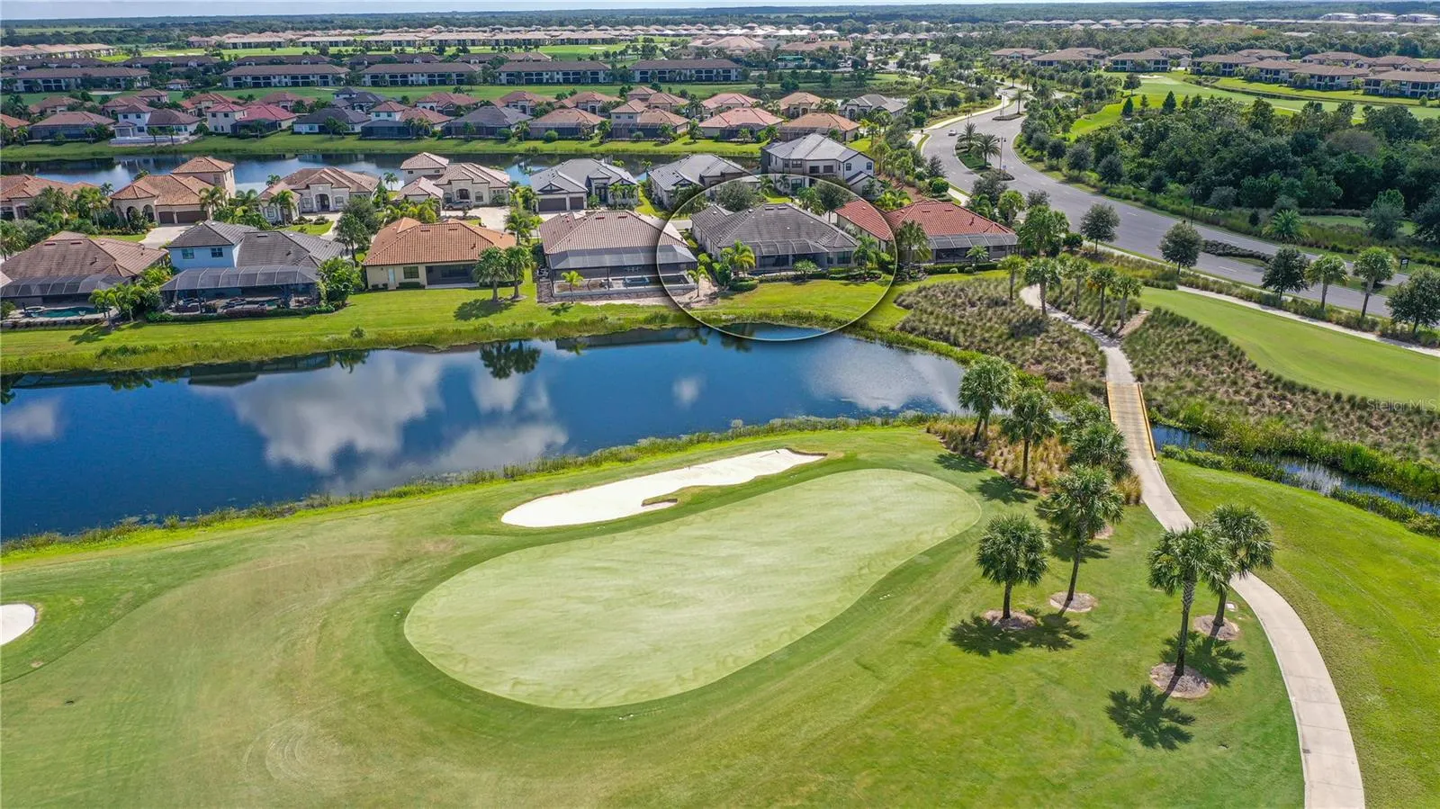 Property is open for the month of Feb 2025 prime season. One of Lakewood National’s finest Lennar furnished Bougainvillea models. This executive luxury home will not disappoint anyone that resides. The soaring decorative ceilings and unique hanging light fixtures through out will WOW you as soon as you come through the double wide front doors. The travertine cobble stone flooring is through out the entire living areas with carpet in the bedrooms. The formal dinning area has a built in dry bar for entertaining and light bright double windows viewing out the front of the house. This home has amazing views from the outdoor lanai, master bedroom suite, guest en suite, Living room, and open kitchen. These views are of rolling greens, pond wildlife, queen palm trees, 3rd hole, 4th tee and 5th fairway of the 1# golf course in the USA.. The huge kitchen granite stone breakfast counter is a great area for everyone to gather. The kitchen has built in oven and microwave with a gas range and real wood light colored tall cabinets with walk in pantry. Lets not forget the outdoor living areas with 2 covered areas to relax under and use the outdoor kitchen for grilling. Nice sized heated self cleaning pool with hot spa to enjoy with lite lanai beams for that real relaxing feel. This all comes with a $600 membership transfer to engage in all of Lakewood National’s wonderful amenities on property. The owner does have a charging golf cart in the garage for tenants to rent for their convenience.