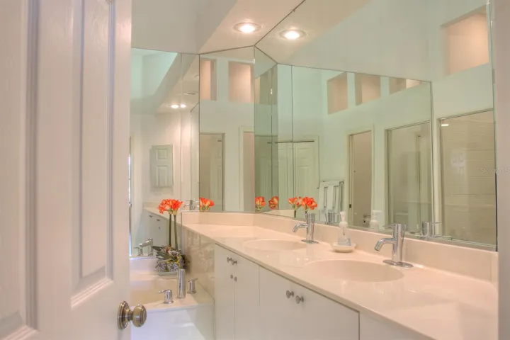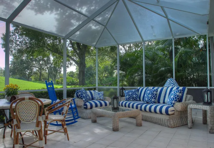 Beautiful decorating in this large villa with expansive views over the University Park golf course. All tile floors and large screened lanai overlooking the greens and sand trap. High end decorating in all the rooms, all tastefully coordinated. The villa has a king sized bed in the master bedroom, in the second bedroom there are two twin sized beds, then in the office/den there is a couch with a queen sized fold out bed. Off the kitchen there is a barbeque patio for ease of entertaining. The detached garage features installed cabinets for extra storage. Great location for your vacation on the exquisite golf course of University Park. UNIVERSITY PARK/ SEASONAL VILLA /SARASOTA/ BRADENTON FLORIDA Available for January through March 15th.