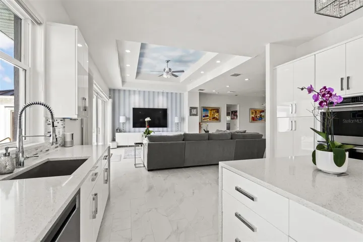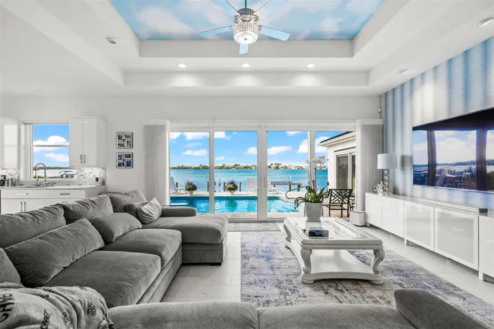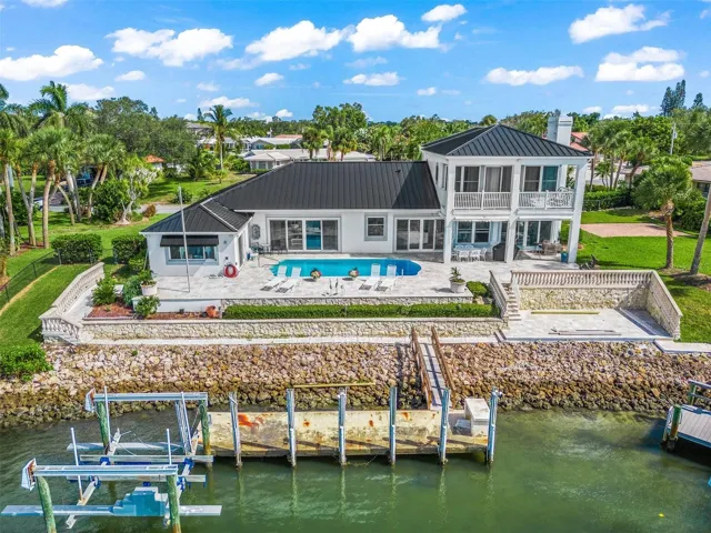 This exceptional island living boasts all the convenience of a mainland location. Prepare to be amazed by this newly renovated waterfront property overlooking the breathtaking Blackburn Bay. With its brand new aluminum roof, four HVAC systems, Kitchen Aid appliances, custom-made cabinets, and solid surface countertops, this home is the epitome of luxury. Step inside to find stunning marble flooring, exquisite electrical fixtures, and even a lift to the second floor. The abundance of built-in cabinets adds to the overall functionality and appeal of this property. Situated on elevated ground, this home offers incredible southern exposure, ensuring that every corner is flooded with sunshine and offers stunning views of Casey Key and Blackburn Bay. As you enter through the double custom doors, you’ll be greeted by a grand foyer that leads seamlessly into an open floor plan. The spacious living room, dining room, custom kitchen, and family room all provide panoramic views of the magnificent Blackburn Bay. The attention to detail is evident in every room, with beautifully designed ceilings and elegant chandeliers adorning the dining room, living room, and family room. The family room, complete with a fireplace, custom cabinets, bar, and wine cooler, offers the perfect space for relaxation and entertainment. On the main floor, you’ll find three generously sized bedrooms and two full baths, along with a huge laundry and utility room equipped with a second side-by-side refrigerator and a convenient powder room. The brand new lift will whisk you up to the second floor where you’ll discover the master suite. This master retreat features a newly custom-made bathroom, three spacious closets, and wall-to-wall sliding doors that lead to a balcony overlooking the bay. Imagine sitting on the balcony, taking in the breathtaking view of the Blackburn Bay, and witnessing the countless activities of dolphins, passing boats, and mesmerizing sunrises and sunsets. It truly is the perfect way to complete your day. This property also offers two large open areas on either side of the house, providing ample space for various activities and hobbies. The prime location of this home offers easy access to both Sarasota and Venice, granting you the opportunity to experience the best of Southwest Florida’s beaches. Whether you prefer the pristine shores of Venice or Nokomis, or the world-renowned Siesta Key Beach, all are within a short drive. Additionally, the highly regarded Pine View school for gifted children is just minutes away. With convenient shopping, easy freeway access, and a serene and secure environment, this property has it all.
