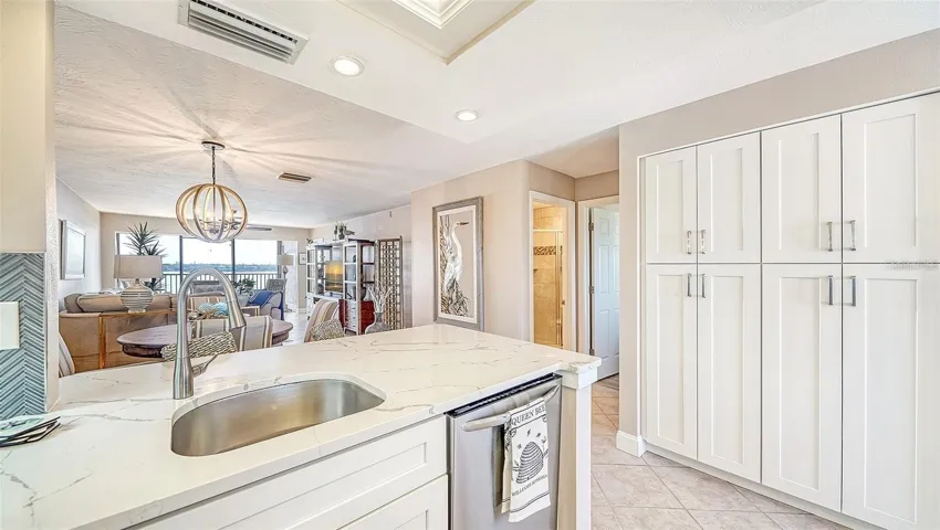 BOOKED FEB/APRIL 2026. AVAILABLE JANUARY 2026. UTILITIES INCLUDED. SIESTA KEY SPECTACULAR FULL BAY/INTRACOASTAL UNOBSTRUCTED VIEWS! BOOK YOUR BEACH GETAWAY NOW! Beautifully updated throughout Turnkey “top floor” Condo in this popular community of Sunrise Cove. Located on the southern end of Siesta Key, directly across the street from Turtle Beach! Upon entering the condo, you will immediately fall in love with the bright open plan dining and extended living room, all tastefully furnished and decorated. The fully equipped kitchen has quartz counters, custom cabinets and new stainless-steel appliances. The Master Bedroom has plantation shutters and more amazing views of the bay, the Master Bathroom was also expanded to provide more space and has a walk-in shower and single vanity. Luxury Vinyl in both the bedrooms and tiled throughout the living areas. Guest bedroom with queen size bed and walk-in closet, and the guest bathroom also has a walk-in shower and single vanity. From the front balcony you will have views of the Gulf, common laundry areas are on each floor, private storage lockers and a trash chute. Plus, 1 assigned parking carport in front of the building and additional guest parking. Sunrise Cove offers many social activities and amenities, which includes a large clubhouse with kitchen, billiards 2 tennis & 4 pickleball courts, fitness rooms, game room, club house, kayak racks, fishing docks, bayside picnic area with gas grills, 2 heated pools overlooking the Bay, and the Jr. Olympic pool is on a peninsula which juts out onto the Bay. Walk across the street the Turtle Beach Access, and you are right next door to Turtles Restaurant, and only .2 miles from the fabulous Ophelia’s Bayfront Restaurant. There is a Free Trolley stop directly across the street from the complex, with free rides to the famous #1 Siesta Key Beach with its crystal quartz sand, Siesta Key Village where you will find shopping and restaurants. If you enjoy the nightlife, Siesta key village is where it’s at! This is the absolute perfect island getaway. Don’t let this one slip away!!