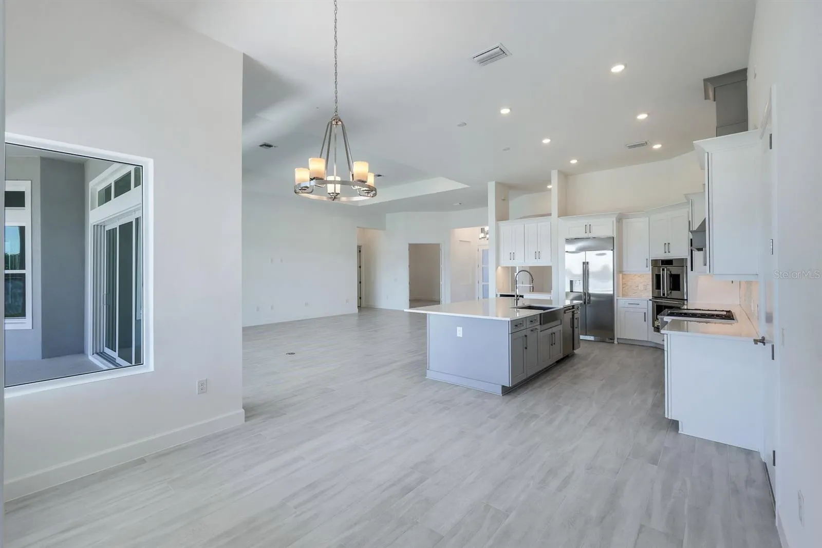 WE ARE OFFERING THE LOWEST PRICED BEACON WITH A LOFT IN ESPLANADE BY THE ISLANDS. This brand new meticulously designed home features an upgraded coastal elevation with classic colors. Stunning curb appeal sets the scene for what you will experience when you step inside this magnificent home. You will be greeted by a modern color palette and open floor plan accentuating stunning porcelain flooring, soaring 12-foot ceilings, 8-foot solid core doors, impact glass throughout the home and an expansive open living area. The focal point of the home is undoubtedly the Chef’s Kitchen featuring shaker cabinets, under cabinet lighting, farm sink in a large center island with built in GE Monogram appliances including a griddle and pot filler. The stunning large master suite is a sanctuary of luxury with a magnificent view through the bay windows, the bathroom features double sinks, two walk-in closets and an expansive shower with two heads. The loft includes a private bedroom suite with a large living area and a wet bar. Experience the serenity of picturesque palm trees and soothing water through the large sliding doors. Walk out to the expansive lanai with an impressive gas fireplace and outdoor kitchen rough-in. This Estate Home is perfect for daily living or entertaining guests. Located in the beautiful Esplanade by The Islands neighborhood. Majestically positioned on a water lot with a captivating view of the amenities center that includes a Wellness Center, Bahama Bar and Grill, Dog Park, Massage Treatment Room, Fitness Center with Locker Rooms, Pickle Ball, Tennis, Bocci Ball, Resort Style Pool with Spa and Lifestyle Manager. A superb Culinary Center is planned for the near future. Close to restaurants, shopping, and entertainment. Short drive to downtown Naples and Marco Island. The home is NOT in an FLOOD ZONE and does not require flood insurance. Arrange your private showing today.