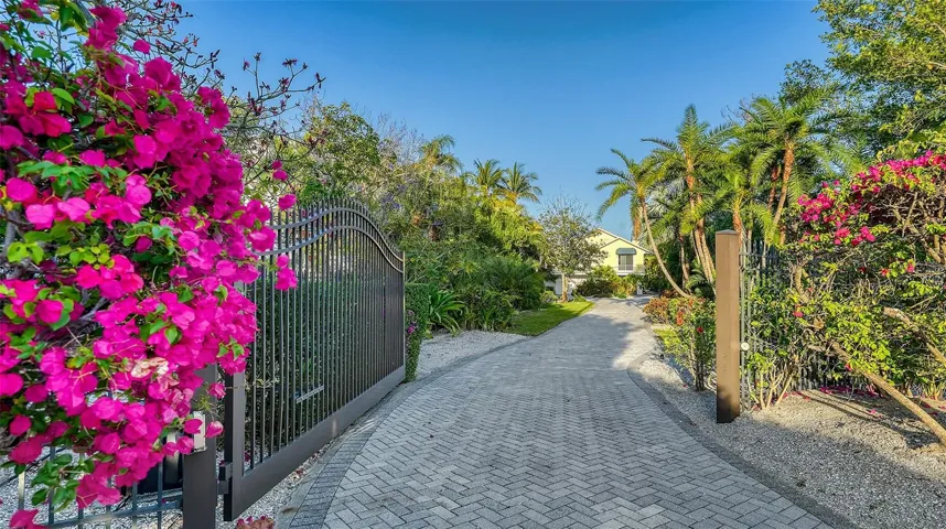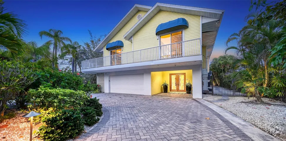 A gated entrance and paver driveway surrounded by lush landscaping leads to this lovely home on a wide canal that is a boater’s dream. The location is a private half plus acre estate across the street from the beautiful Gulf of Mexico and beach. The exquisite double entry etched doors open to the first living level of storage and an elevator plus staircase that goes to the main level. The main living level features gorgeous wood floors, beautifully updated kitchen with granite breakfast bar that is open to the entertaining area with serene views over the wide canal waterway. All of the bedrooms have terraces. There is a caged pool and spa with an additional sunning area. This lovely canal home has been completely updated with the new gate and fence around property, major landscape work and premium sound system. The boater has direct intra coastal access. New seawall and dock installed in 2022.