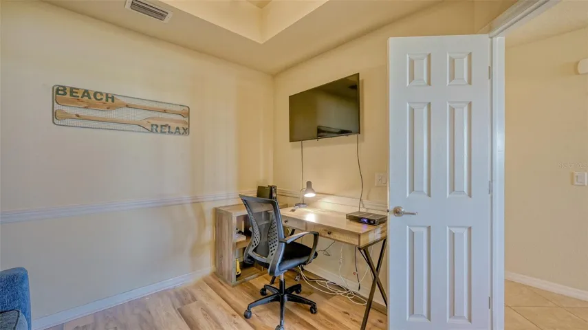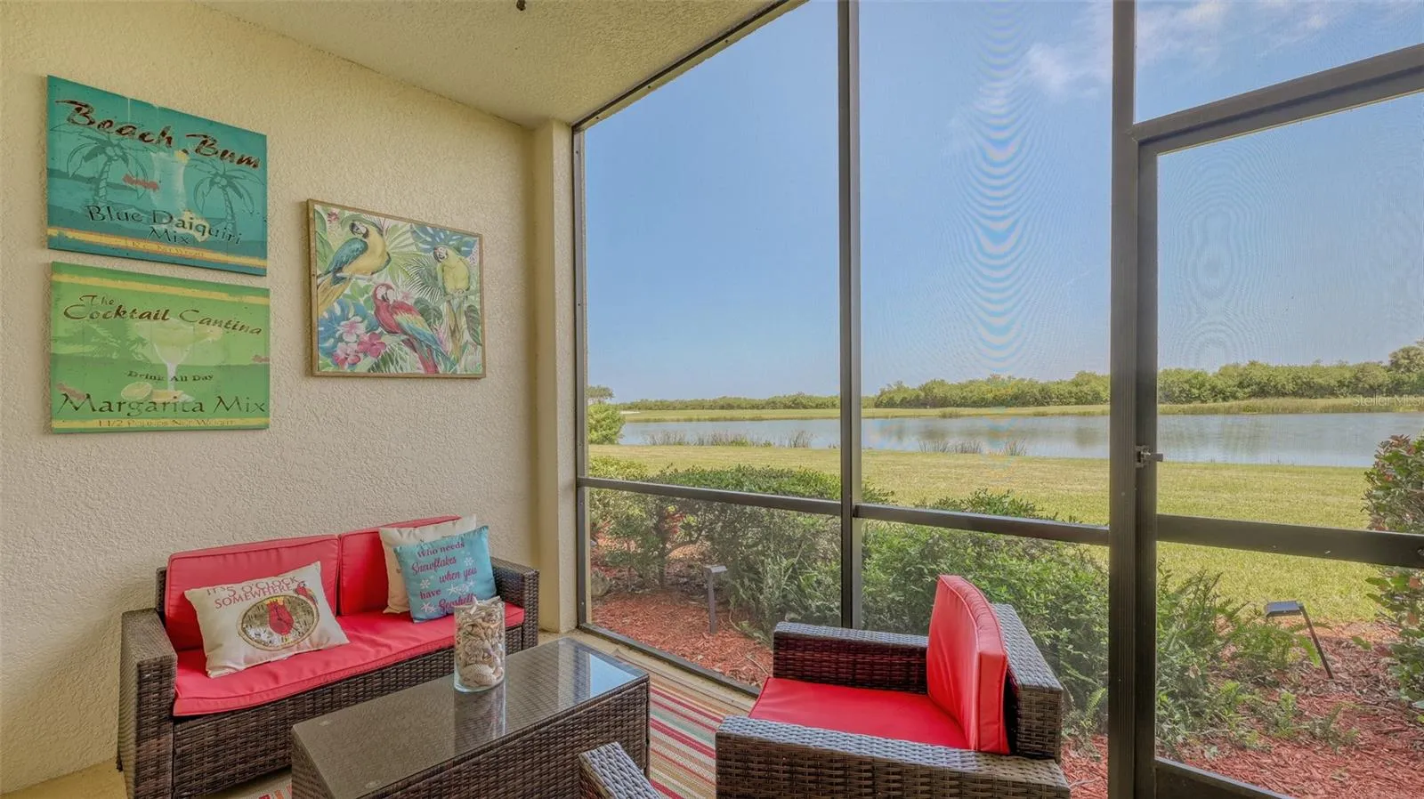 Beautifully decorated 2 /2 plus Den/ Office first floor Veranda . Open floor plan with Living Room, Dining Room and Eat-in Kitchen all looking out to the golf course and the Manatee River. Master bedroom has a King size bed and T.V.,2 walk-in closets. The ensuite bath has a walk-in shower and double sinks. Guest bedroom has a Queen bed. Den/Office has a sleeper and desk plus a T.V. The Living Room sofa is also a sleeper for more accommodations. Full membership transfers with a $572.45 one time fee. The membership includes discounted golf on the championship courses, access to