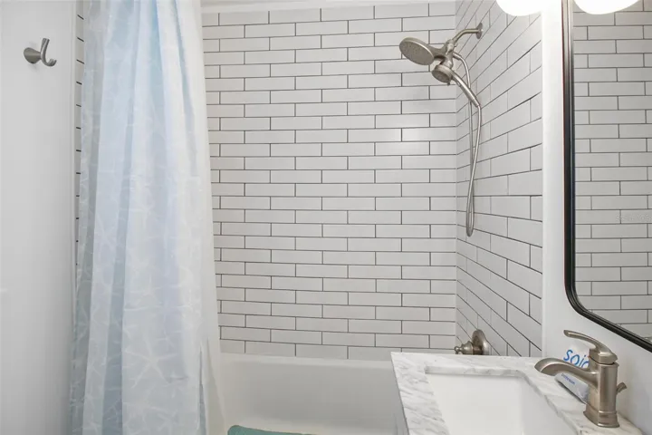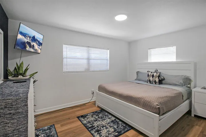 Retreat to one of the two cozy bedrooms, each offering plush bedding and serene ambiance for a restful night’s sleep. The primary bedroom has a king-size bed, a dresser, and TV. The second bedroom has a queen-size bed with a dresser and a TV. The first bathroom has a large shower/tub combo. The second bathroom is off of the kitchen and has a walk-in shower