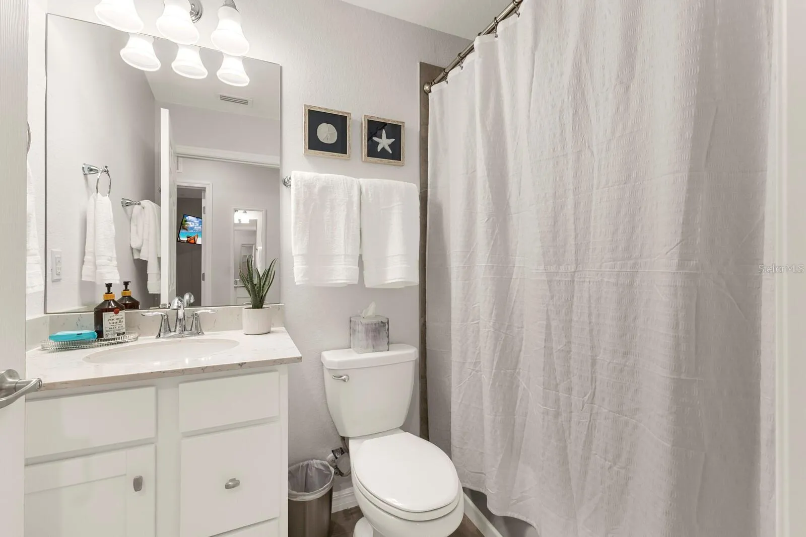 Beautifully Furnished 2-Bedroom + Den First-Floor Veranda Overlooking the 9th Hole – Lakewood National Golf Resort. Relax and unwind in this stunning first-floor Diangelo II model veranda, fully furnished and tastefully decorated, located in the sought-after Golf Resort Community of Lakewood National. This spacious 2-bedroom, 2-bath condo with a separate den/study offers an open floor plan, providing a well-appointed kitchen with stone countertops, a large island, breakfast bar, and stainless-steel appliances — all opening seamlessly to the living and dining areas, perfect for entertaining or simply enjoying serene golf course views. The primary suite is a true retreat, featuring a King-size bed, flat-screen smart TV, two walk-in closets, and a luxurious attached bathroom. The guest bedroom also offers a King-size bed, smart TV, and convenient access to the second full bath. The den serves as an ideal home office with a dedicated desk space, providing flexibility for work or additional guest accommodations. Enjoy nightly sunsets from your private, screened lanai overlooking the impeccably maintained Arnold Palmer-designed golf course. Additional features include an in-unit laundry room with full-size washer and dryer, high-speed Wi-Fi, Spectrum Cable, and smart TVs in all bedrooms and living spaces for modern convenience. A one-car detached garage provides extra storage for your golf clubs, tennis or pickleball gear, and more. Located directly across from the golf range, putting greens, clubhouse, and main resort pool, this unit offers unmatched convenience for enjoying all of Lakewood National’s world-class amenities. Experience luxury living and the ultimate Florida resort lifestyle. The Lakewood National amenities offer an exceptional resort lifestyle you and your family are sure to enjoy. Incredible amenities include; not one, but two 18-hole golf courses, full service tiki bar at the resort pool, full service spa, 8 clay tennis courts and 4 pickle ball courts, staffed fitness center, 2 bocce ball courts, full-time lifestyle director, and the new Grand Clubhouse is open! There is always something to do! Close to the Gulf beaches, shopping and dining, with easy access to I75 and all of Lakewood Ranch. Life is what you live, style is how you live it! Monthly rentals less than 6 months include utilities and are subject to sales and Resort Taxes (13%). * Monthly Rate December – April is $6,750.00.*