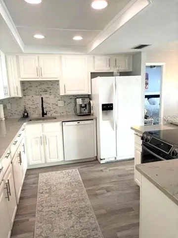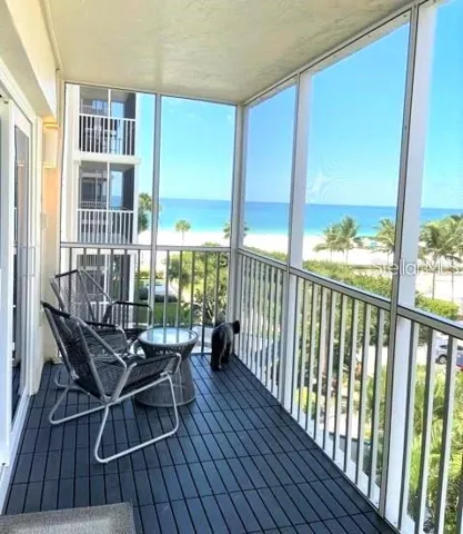 WHAT A BEAUTY! Completely remodeled, turnkey, beachfront condo with gorgeous Gulf views from your covered, screened patio. Enjoy the modern kitchen with stone countertops, sleek cabinetry, and modern appliances. The en-suite is a lovely retreat complete with an ample walk-in closet and roomy, sleek modern bath. The great room is spacious and beautifully appointed, with a convenient hallway half bath. Perfect for entertaining! Nothing will beat the views and sunsets from your patio. The Lido Ambassador is steps from the white sands of Lido Beach, providing private beach access. Plus, enjoy the sparkling pool complete with beach views. Convenient laundry facility on site, as well as fitness room and clubhouse. Unit also includes a covered parking spot. Enjoy the fine dining and shopping of St. Armand’s Circle just moments away.