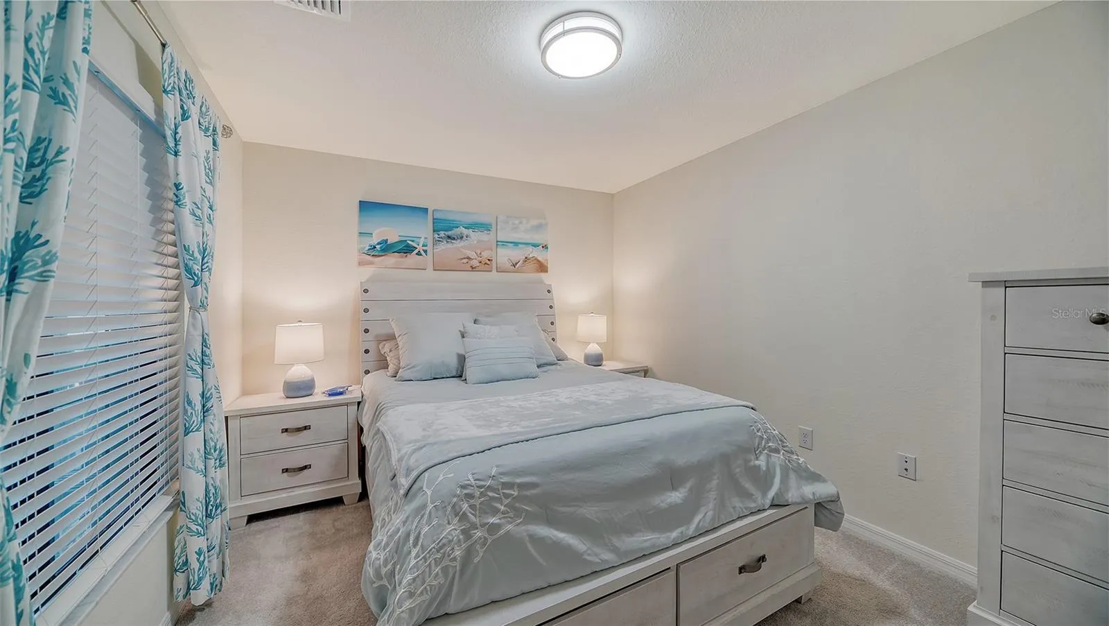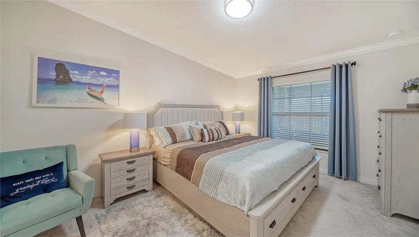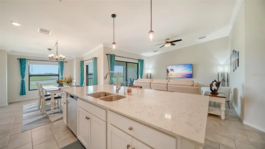 Mster bedroom has a King bed ,T.V and an en-suite Bath with walk-in Shower. Bedroom 2 has a Queen bed and abuts the full Guest Bath .The updated Kitchen with large stone island opens to the Dining area and Living Room which all look out the large screened -in Lanai to the Manatee River and golf course.