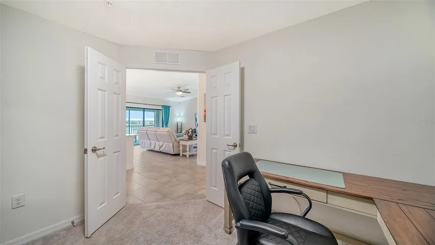 The Den /Office is set-up with a desk and sofa bed for guests. A one car private garage is included.