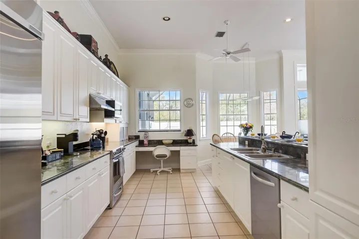 Newer appliances plus all dishes and small appliances you would need to create gourmet meals. Family and Living Rooms have fireplace and Family room has large flat screen 3D TV with glasses. Also has stereo, DVD, CD player.