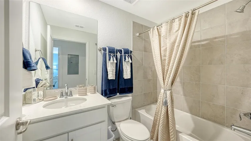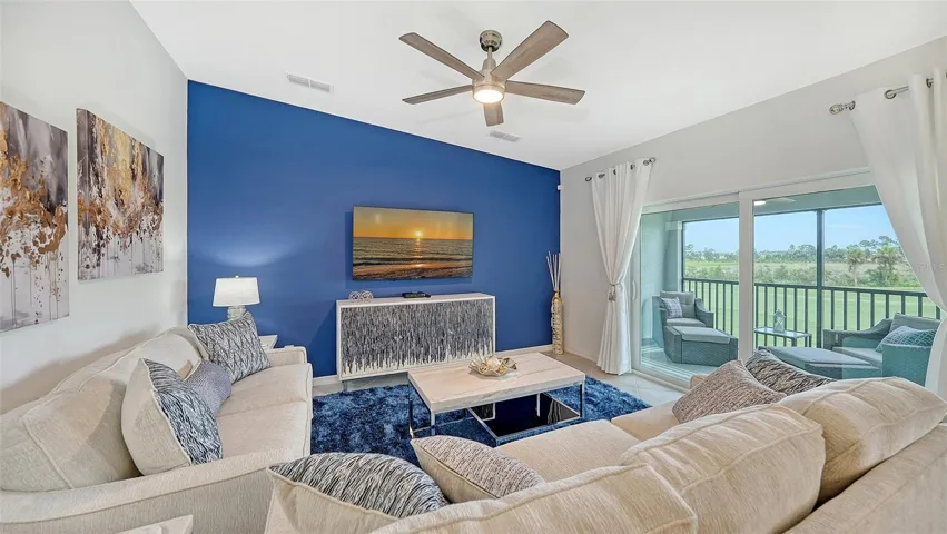 Stunning second floor 2-bedroom 2-bathroom condo with a den has stunning view of the fairway! This turnkey property has been professionally decorated with chic modern flair and upgrades galore which include a custom back splash and a built-in bar with wine refrigerator and upgraded lighting. Enjoy gorgeous sunny days and cross breezes on your very own front and back lanai. Functional open floor plan lends itself to Florida style living and entertaining. Nicely appointed kitchen boasts stainless steel appliances and granite counter tops. Master has king size bed and ensuite bathroom with double sinks and large tile walk in shower. Plenty of room for guests and family. Queen bed in the second bedroom. Third flex room has a pull-out sofa with a desk for additional sleeping quarters or working space. Separate detached 1 car garage for your car, golf clubs and beach gear. Entertain guests and enjoy meals as you watch the golfers navigate this new 18-hole Gordon Lewis designed course from your very own lanai! Amenities include TIKI BAR/RESTAURANT, FITNESS CENTER, RESORT STYLE SWIMMING POOL, POOLSIDE SERVICE, THREE SATELLITE POOLS, TENNIS COURTS, PICKLE BALL, BOCCE BALL AND MORE! Golf membership transfer available for purchase. $65.00 monthly minimum expenditure is required at the on-site Tiki- Bar/Restaurant (Alcohol Excluded). Easy access to I-75, downtown Wellen Park, Atlanta Braves Training stadium and local shopping and dining, minutes to Gulf Beaches and all Wellen Park has to offer. ***HIGH SEASON (DEC-APRIL) RATE~ $6,500.00 PER MONTH*** LOW SEASON (MAY-NOV.)