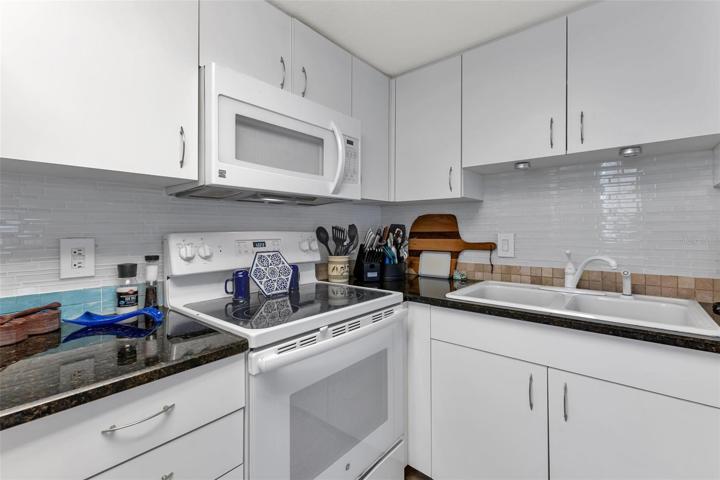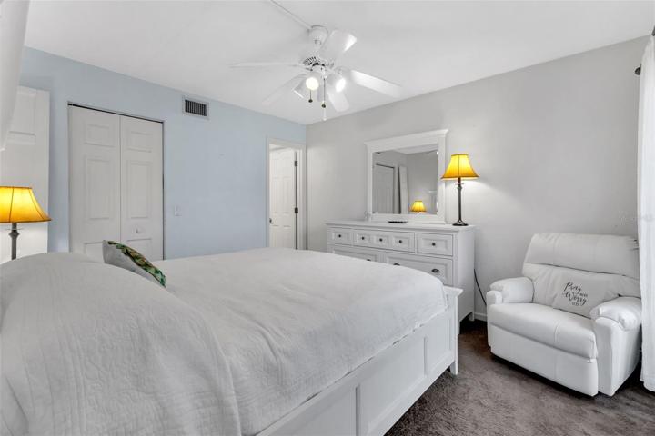 What is unique about this building compared the others, well, it is the newest built as well as the only building in Bimini Bay that is completely concrete both stories, as opposed to the second story being wood framed. Don’t miss out on this FIRST FLOOR CORNER condo located in the beautiful Bimini Bay. This condo features 2 bedrooms and 2 bathrooms with a spacious feel from the moment you walk in the door. With so much to offer, this condo features a brand-new roof as well as in the kitchen there are granite counter tops, a glass cook-top oven, food pantry, plenty of counter/cabinet space as well as an in-unit full size washer and dryer! The master suite provides a walk-in closet and access to the patio through large sliders. The cozy patio area is nestled in the back of the unit where you can sit and listen to the birds or even watch the squirrels as they run from tree to tree. Facing South, the condo offers the perfect amount of sunlight all day long, you’re able to sit and relax while feeling the warmth of the sun and the cool cross breeze. As you venture back inside, the guest bedroom is located in the front with plenty of natural light streaming through the window. Also, the guest bathroom offers a tub and shower combo for those nights you or your guests want to sink in, lay back, and unwind.
