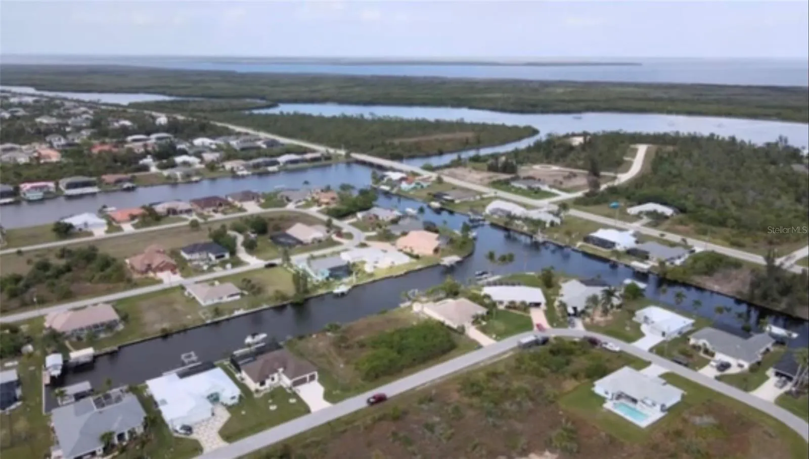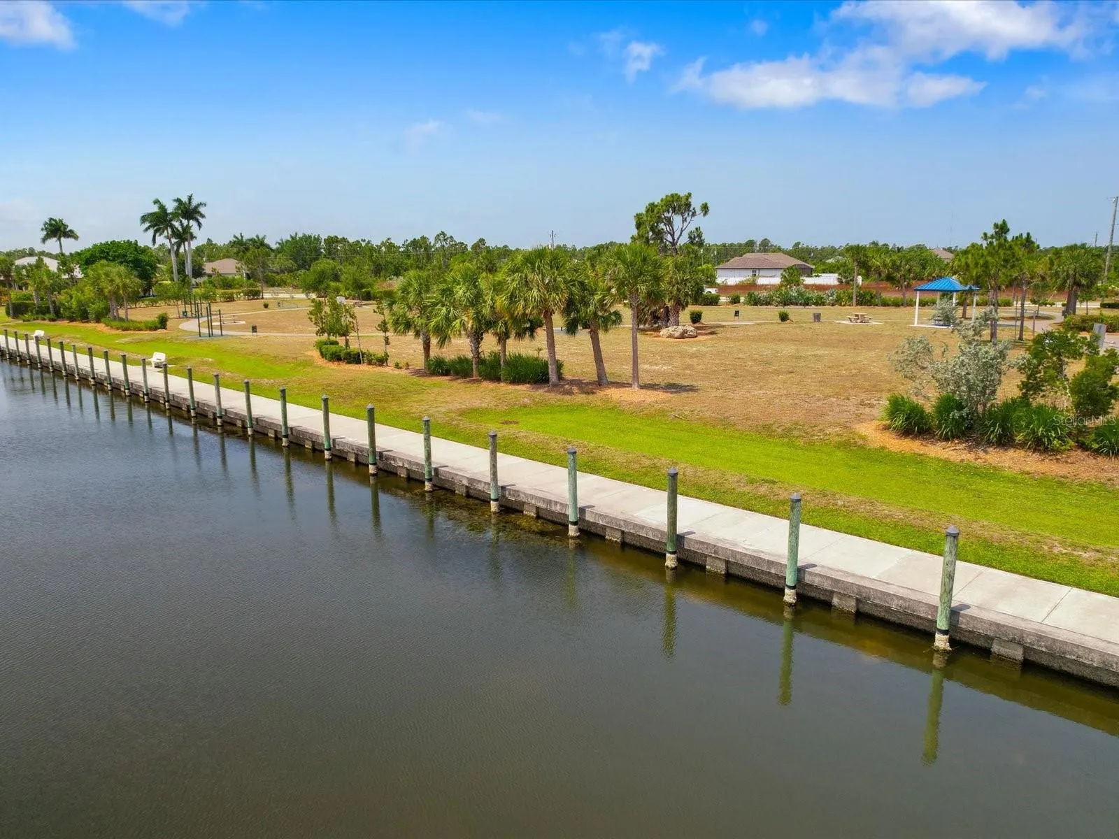 Gorgeous waterfront lot with Gulf Access, located right near the desirable Interceptor lagoon that leads to Charlotte Harbor, doesn’t get any closer than this at this price point! Partially cleared with a cement seawall already in place, ready for your new build, pool, dock & lift! Located in fabulous part of South Gulf Cove surrounded by newly constructed homes. Electrical at site, on public water & public sewer, and NOT IN a scrub jay area. Save time and $$$$ with all these existing amenities. South Gulf Cove is an incredible area of Port Charlotte, with 5 parks, two servicing community boat ramps, and is golf cart friendly! Bring your boat or RV, no deed restrictions stopping you, just some architectural restrictions that keep the neighborhood nice…homes need to be 55′ wide, no less than 1500 sq ft homes, minimum 2 car garage; ask agent for attached Community Docs. Work with builders in the area that have plenty of floor plans and can guide you through a smooth build. No HOA unless you’d like to join it for neighborly get togethers at their community center; $120 per year. They aren’t building any more land, get your slice of waterfront paradise before it’s gone!