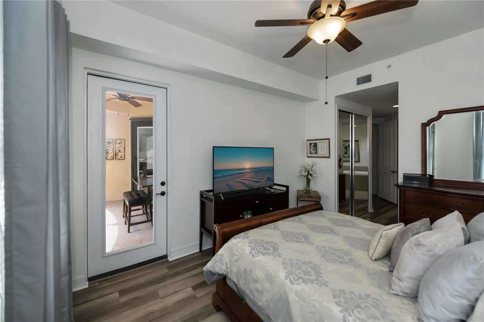 LUXURY LIVING, DONT LET THIS ONE GET AWAY!!! HUGE PRICE ADJUSTMENT, too. Here is a fabulous 2 bedroom, 2 bath condo on the 3rd floor in the prestigious gated community of Vivante. Large living room has abundant natural light with tall sliders to scenic front porch adjacent to serene fountain plus high ceilings and 8 ft doors. Chef worthy kitchen includes real wood cabinetry, full pantry, convenient breakfast bar, newer appliances, granite countertops and separate dinette area with same pond view and spa like fountain feature. This split plan has a spacious Master bedroom boasting large walk in closets, private lanai access plus an updated ensuite bath complete with soaking tub, separate shower and dual split sinks. The guest bedroom is also ensuite enjoys serene views, deep closet and rich bath that is private or shared with dual lockoff door access. Inside laundry is generous sized. Plenty of room to park your vehicle under the building in your DEEDED 1 CAR GARAGE, and extra deep with installed shelving for additional storage opportunities and will be perfect to avoid inclement weather as its close to the elevators. Vivante features Resort style amenities including both infinity edge pool plus lap pool, clay tennis courts with own tennis center, billiards room, clubhouse lounge, TV, card, craft rooms, library, wifi media centre and management’s office, fitness facilities, full spa offering massages facials, and mani-pedis ,men’s and women’s locker rooms with sauna, steam rooms – the fitness room overlooks the pool and larger lake, lushly landscaped grounds, all designed to enhance your lifestyle and provide endless opportunities for relaxation and recreation.Variety of social events including wine tasting, food trucks, exercise classes, and more. Hoa includes cable & your equipment, sewer, trash, water,pest control and Internet! This remarkable waterfront community is only 3 miles from beautiful, historic Punta Gorda, top dining, shopping, farmers market, art/entertainment district, SunSeekers Resort, and Fishermans Village. With its stylish design, high-end features, and desirable location, it offers a luxurious and comfortable living experience. Don’t miss the opportunity to make this exceptional residence your own and enjoy the epitome of upscale condominium living..hurry to schedule your showing today.