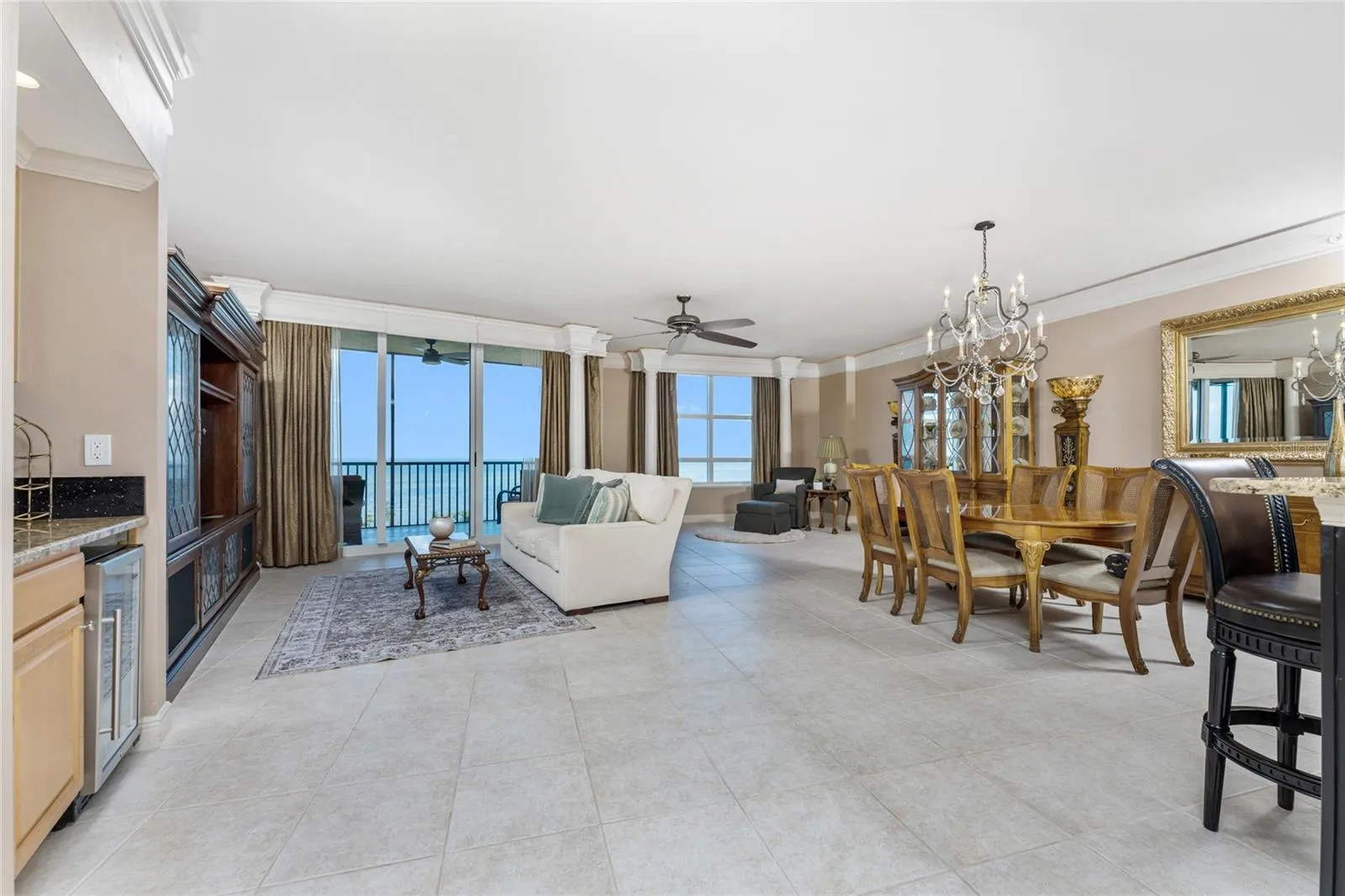 Come experience waterfront living at its finest in this upgraded Grande Isle condo, where million dollar views await! This renovated residence boasts high-end finishes, including extensive moldings and millwork that elevate the elegance of every room. Offered fully furnished and ready for you to move right in, this condo comes with a golf cart and TWO parking spaces! Step into the main living space and be mesmerized by the illuminated crown molding, accentuating the custom draperies and creating an ambiance of sophisticated charm. The incredible views of Charlotte Harbor through the impact sliding doors and windows are nothing short of breathtaking, offering a picturesque backdrop to your daily life. The tiled, screened lanai is the perfect spot to relax and soak in the fiery Florida sunsets, while watching the boats go by. The kitchen is a chef’s delight, featuring a handsome illuminated tin ceiling, granite countertops and a striking stone backsplash. The expansive cabinetry offers handy sliding shelves enhancing your storage capability. Entertaining is a breeze with a built-in granite-topped wet bar and an expansive breakfast bar opening the kitchen to the main living space. The primary suite is a true retreat, offering elegant furniture with incredible water views framed by rich draperies and illuminated moldings, new carpets, direct access to the lanai and a spacious walk-in closet. The ensuite bathroom is complete with dual sinks, a tiled shower, and a garden bath. Guests will feel right at home in the two additional bedrooms. One is an ensuite with a full bathroom, providing privacy and comfort. The other features a built-in Murphy bed and can easily double as an office, offering flexibility to suit your lifestyle needs. Third full bath has a shower converted to storage, which can be transformed back. Grande Isle is renowned for its resort-style amenities, ensuring every day feels like a vacation. Enjoy the Olympic-sized swimming pool, relax in the spa, or rejuvenate in the sauna and steam rooms. The community also offers a grilling area, fitness center, and grand salon, providing everything you need for an active and vibrant lifestyle. Exterior photos were taken pre-Ian.