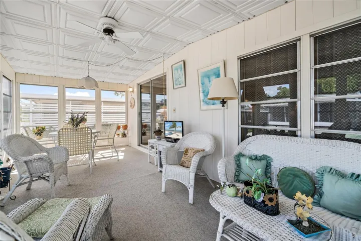Welcome to this beautifully maintained 2-bedroom, 2-bath sanctuary—perfect for your second home or retirement dreams. Begin your mornings on the spacious enclosed front lanai, savoring your coffee and the serene surroundings. This charming home features an open floor plan with a bright and airy living room, ideal for entertaining guests or unwinding after a day of activities. The modern kitchen boasts ample counter space and a cozy breakfast nook, making meal prep a delight. The master bedroom offers a peaceful retreat with an en-suite bathroom and a walk-in closet, while the second bedroom is perfect for guests or a home office. You’ll appreciate the convenience of parking under the carport and a full-size laundry in the shed at the back of the carport. Nestled in the vibrant, gated 90-acre Oakwood Manor community—the only land-owned manufactured home community in the City of Sarasota—this home is a treasure trove of amenities designed to enrich your lifestyle. For a reasonable monthly fee of $190, enjoy a large clubhouse with a commercial kitchen, event stage, fitness room, cozy library, and more. Unwind in the heated pool with a handicap ramp, relax in the spacious hot tub, or partake in outdoor activities like bocce ball, ping pong, and picnicking under beautiful oak trees. This age-restricted social haven is conveniently located next to the scenic Legacy Trail and city pickleball courts. Just a short trip from downtown Sarasota, stylish St. Armands Circle, and the world-renowned Siesta Key Beach, this community offers the ultimate in Florida living. Live where others vacation and make every day a delightful adventure! Please note, no pets or motorcycles are allowed. Come embrace the fun, active lifestyle you’ve always dreamed of!