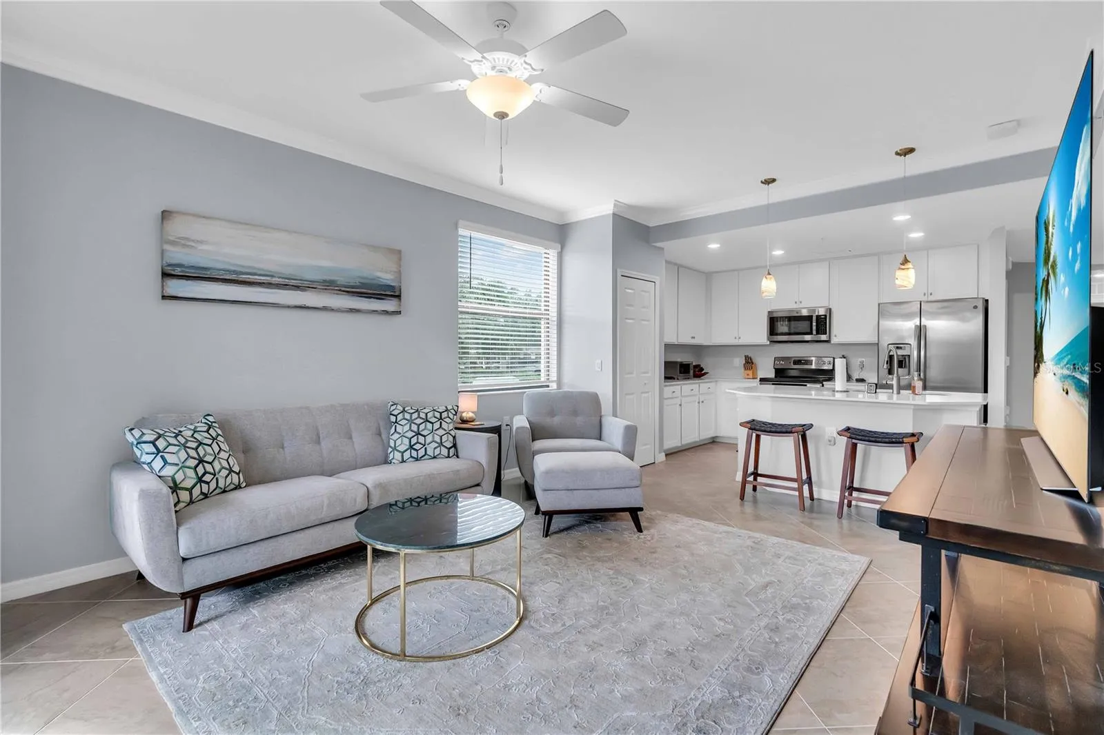 Bright, open, and modern – this condominium impresses with its spacious and versatile layout and abundant natural light. The main bedroom boasts a queen size Tempur-Pedic remote-adjustable mattress, ensuring restful nights after your relaxing days of resort-style living. Guest Room 1 features a bunk bed with a queen-size bed on the bottom and a twin on the top. Guest Room 2 has a double-sized pull-out sofa and also includes a small office setup with a computer monitor, keyboard, mouse and a HP printer for guests who need to stay connected to work.
