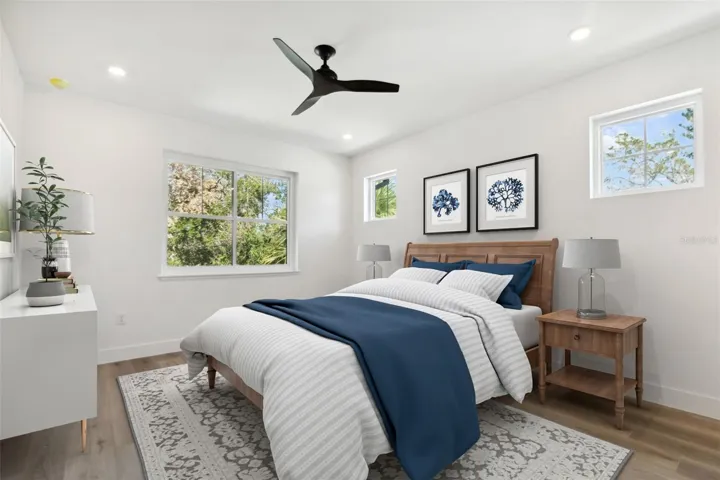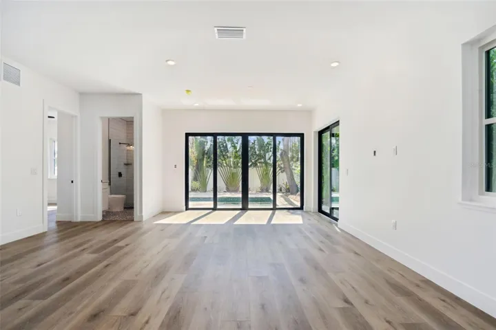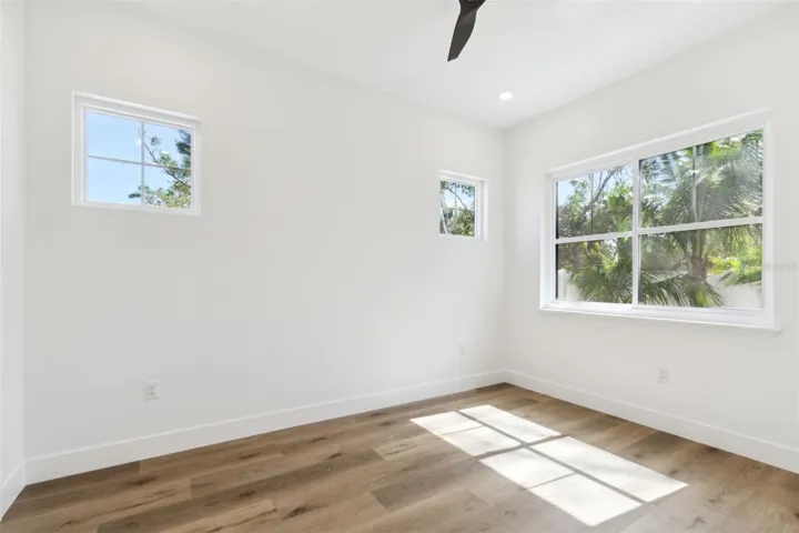 Some Photos Have Been Virtually Staged. HUGE PRICE REDUCTION ! Outstanding opportunity to own a brand-new luxury home in the heart of Sarasota. This Well-Constructed 4-bedroom, 4 full bath custom built 2 story pool home boast 3628 sq ft of living area plus a 2-car garage with epoxy finish. From the paver driveway and walkway with wood ceiling to the elegant hurricane rated Impact glass front door you will feel the quality immediately. The luxury vinyl flooring is carried thru the entire main living area and all 4 baths have upgraded ceramic tile. The gourmet kitchen is very open to all areas of the bottom floor and features quartz countertop, solid wood cabinets with soft closing drawers, high-end Thermador SS appliances including oven, microwave, large refrigerator and gas cooktop on separate kitchen island including custom hood and sitting area also featuring a large quartz countertop. All windows and doors are hurricane rated Impact glass for additional strength and safety. The dining room/living room have high soaring ceilings that adds a feel of spaciousness and there is also a large family room that overlooks the pool and paver deck area. The 2nd bedroom is on the 1st floor along with a guest/pool bath with décorative fixtures and a large shower. A generous laundry room with washer/dryer, upper and lower cabinets with sink is conveniently located adjacent to the garage and has access from the garage and from the main living area. There is storage space under the staircase and includes a tankless water heater. The stylish stair rails lead to a very efficient 2nd story loft area with 2 in-floor electrical outlets and overlooks the dining/living area. The large primary bedroom has a private covered balcony with wood ceiling and overlooks the back yard pool area. The primary bath includes quartz countertop with double sinks, a large glass shower and a free-standing soaking tub and decorative fixtures. Bedroom #3 includes an en-suite bathroom with solid countertop and shower with floor to ceiling tile. Bedroom #4 has private access to bath #4 which includes solid surface counter and tub with floor to ceiling tile. Outside the home is fully fenced with high quality vinyl for privacy and landscaped with large tropical trees. There is a large brick paver courtyard area on the side of the home accessed from the 4 sliding glass doors near the kitchen and includes pre-plumbed for water, gas and electric as well as a pass-thru window from the kitchen. The private backyard is highlighted by the open-air saltwater pool, paver decking and lush landscaping. The exceptional location of the home gives great access to all services including shopping, restaurants, Sarasota Memorial hospital, Downtown Sarasota, Siesta Key and Lido world famous beaches and much more. Call today for your private showing.