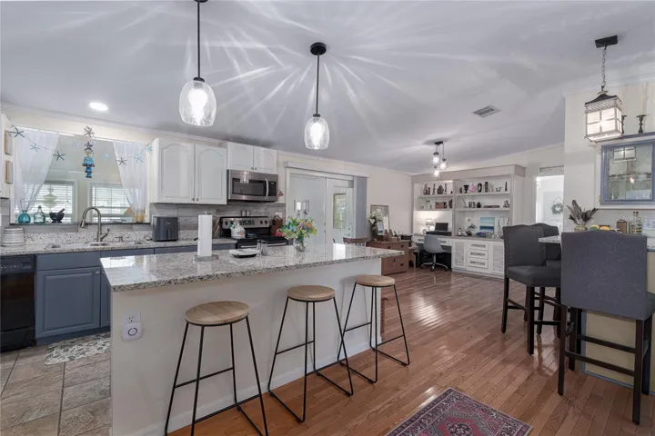 The home features spacious living areas, updated flooring, and a bright, open layout ideal for both everyday living and entertaining. The kitchen includes modern finishes, ample storage, and room to gather with family and friends. The owner’s suite provides comfort and privacy, while additional bedrooms are generously sized for guests or hobbies.