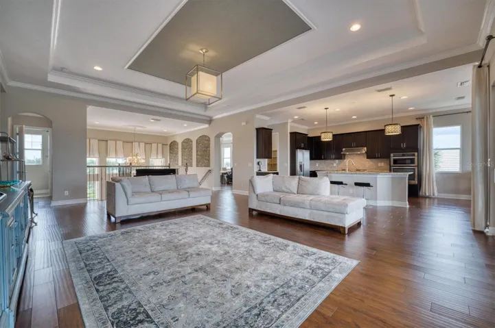 Spectacular coastal RIVERFRONT ESTATE commands endless water views. This gorgeous Savannah offers a modern spin on split-level living with stunning dual entry staircases opening up to a spacious foyer. The first level is perfect for a multi-gen family with 2 bedrooms, 2 bathrooms, and living area. Step through the sliders to one of the largest pools and lanais in the neighborhood. This massive 45x50ft, outdoor paradise space has new screens, outdoor kitchen hook-ups, and a huge 22x30ft cloud shaped, heated, pool with spa for entertaining all your loved ones. Also on the lower level, a laundry room with storage space and a 3-car split garage. Second level offers breathtaking river views of glistening water from every room that will “WOW” you. The open and inviting great room with tray ceiling and crown molding throughout has large sliders bring in natural light and leading to a second screened in lanai. Adjacent from the living room, a professional chef’s kitchen with new refrigerator, SS appliances, gas cooktop, wall oven, oversized walk-in Butlers pantry, and granite island. Enjoy glorious mornings, breathtaking evenings, tropical breezes, manatees, dolphins & boats from this breathtaking vantage point. Around the corner, you enter a large office with built in bookshelves and large windows offering plenty of natural light. On the other side of the second level is the primary suite with walk-in closets and bathroom that includes large walk-in shower, water closet, and garden tub. This home is full of quality craftsmanship, fine finishes, and 2 new (2024) high efficiency A/Cs. Tidewater Preserve offers maintenance free resort-style living, a private marina, 2 clubhouses, resort-style pool, fitness center, community room w/kitchen, grill area, playground, dog park, canoe & kayak launch w/storage, and a full-time lifestyle director. Low HOA fees, NO CDD fee, and near world class beaches, shopping, and fine dining. Make your appointment to see this amazing home today!