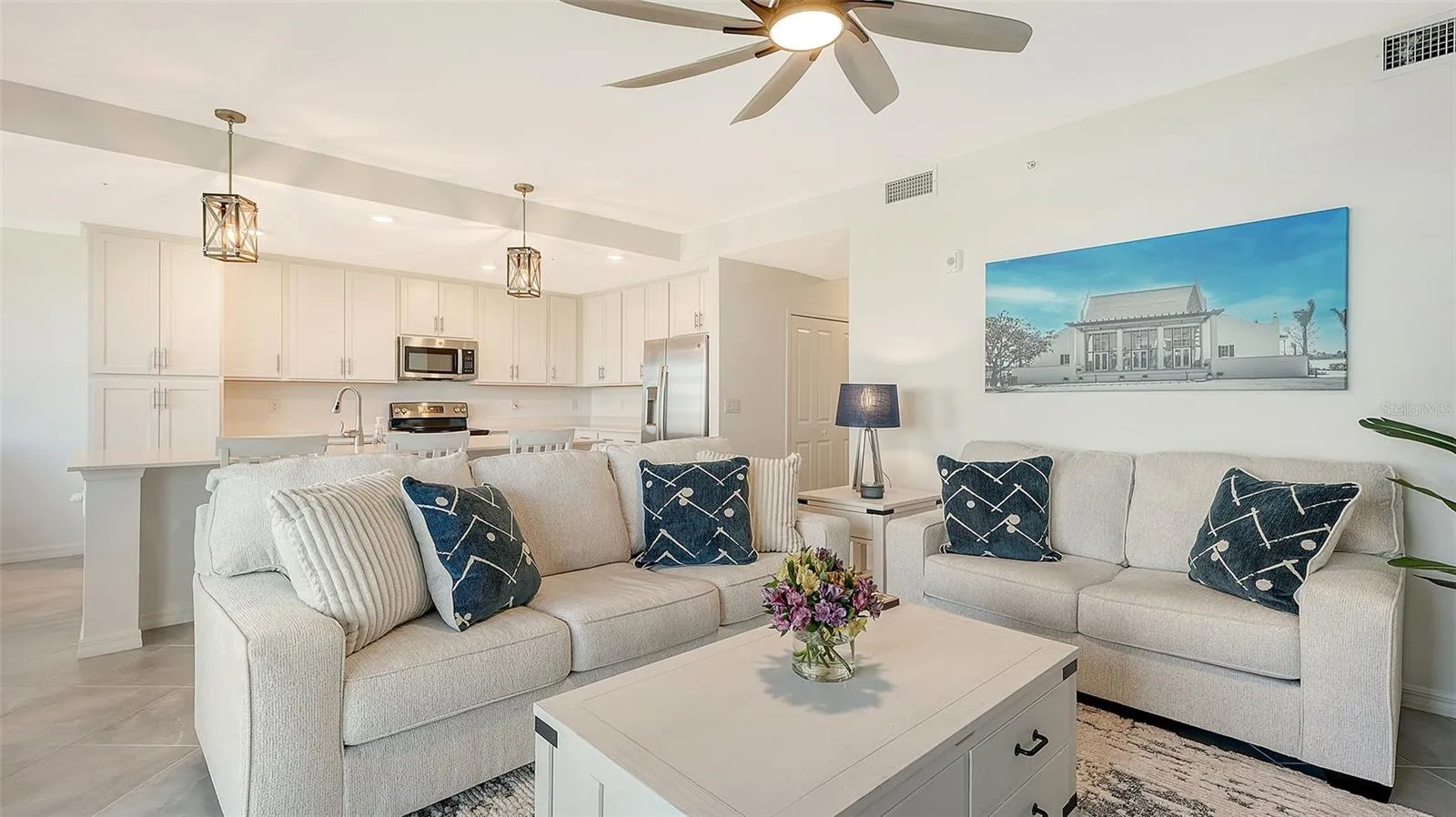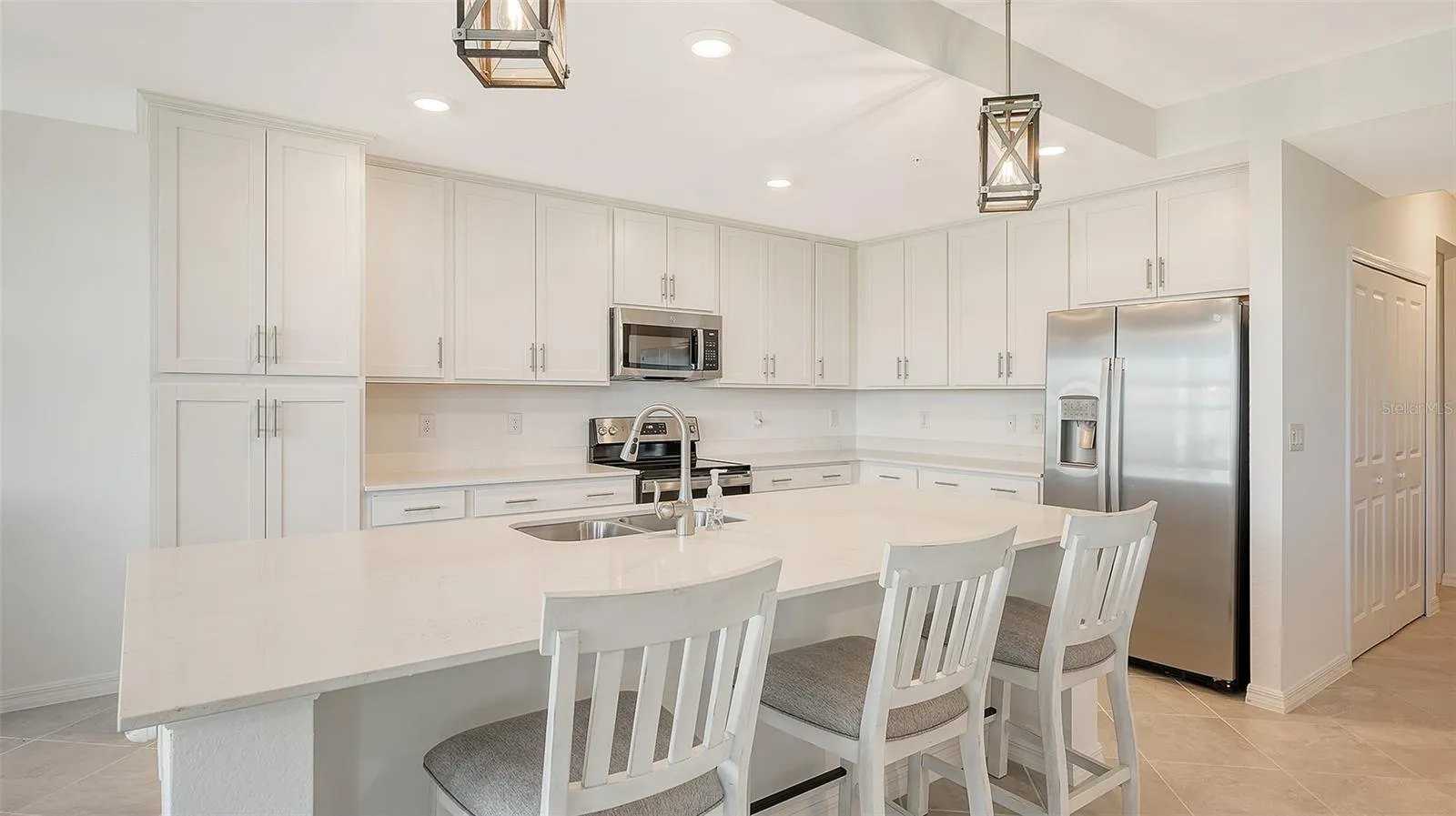 Gorgeous “Birkdale” 2nd floor, 2-bedroom, 2-bathroom condo with stunning views of the fairway, located within the gated Community of Wellen Park Golf & Country Club. Take in the lovely views of the fairway and the lake as you enter the condo which boasts a clever open floor plan with a dream kitchen located at the heart of the gorgeous condo. Large island for cooking and entertaining and new stainless-steel appliances are featured with lots of cabinet space. Master suite features a King bed and an en-suite bath with tile walk-in shower. Guest room features a queen bed with full bath next-door. This lovely condo is well stocked and offers a soothing coastal color palette. Come and experience Florida resort style living at its best in this premier golf community. You’ll enjoy hours of fun as you entertain guests, enjoy meals, morning coffee and sunsets on your private lanai as you watch the golfers navigate the new Gordon Lewis 18-hole championship course. This building is located in closest proximity to all of the amenities on property. Enjoy the fantastic resort-style amenities this Community offers; TIKI BAR, FITNESS CENTER, RESORT STYLE SWIMMING POOL WITH POOLSIDE SERVICE, 3 SATELLITE POOLS, TENNIS AND PICKLE BALL, BOCCE BALL, GYM AND MORE)! Golf Membership available for purchase. The Wellen Park community offers a brand-new downtown area with a huge lake, walking trails and wonderful shops, events, live music, local eateries, farmers market. Take in a Baseball game or many of the other events offered at the Cool Today Atlanta Braves Training Stadium just minutes away. Located within 20-minutes of 3 spectacular Gulf beaches. Escape the ordinary in this resort style community! Call for a showing today! Easy access to I-75, local shopping and dining and all Venice has to offer.
