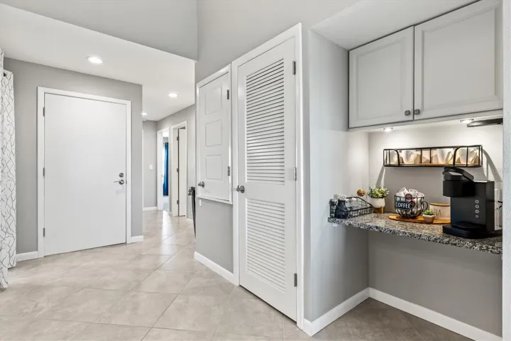 This immaculate, turn-key furnished condo boasts BREATHTAKING views of Palma Sola Bay! Discover your coastal oasis just 3 miles from the beautiful beaches of Anna Maria Island. When you enter the home on the ground floor, you are greeted with an oversized – non-conforming great room with it own seperate HVAC! Perfect for game room, man cave, or additional living space! Did I mention an OVERSIZED 2 car garage with workbench and shelving? Upstairs, prepare to be wowed! Enjoy beautiful sunrises and bay views from your living room or from the screened porch off the updated kitchen, where you can enjoyn having your morning coffee or winding down in the evening with a glass of your favorite vino.The spacious master bedroom features walk in closet, an office space – ideal for remote work, along with a luxurious master bathroom featuring dual sinks and an oversized shower for ultimate relaxation. Both the upstairs and downstairs HVAC units were replaced in 2024, ensuring comfort year-round. Also, hurricane-impact windows and sliding doors have been installed throughout the unit which is great for keeping insurance costs low! In total, Unit has had $150,000 of renovations and is immaculate! For water lovers, kayaking access is conveniently located behind the unit, making it easy to explore the serene waters of Palma Sola Bay. The community features a spacious clubhouse, game room, library, gym, 2 heated pools and much more. Your condo fee of just $675/mth includes cable, internet, sewer, trash and flood insurance. Don’t miss this opportunity to own a slice of paradise!