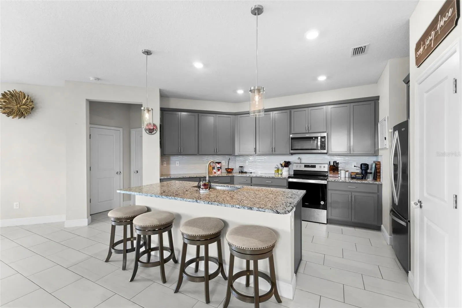 Stunning Former Model Home in Grady Pointe! Discover this exquisite former model home in Grady Point, featuring an array of luxurious upgrades! This spacious 3-bedroom plus den, 2-bath residence is now available and ready for you to call home. As you step inside, you’re greeted by soaring high ceilings and elegant upgraded moldings that set the tone for this sophisticated space. The open floor plan is thoughtfully designed with a split layout, offering both privacy and a seamless flow for entertaining. The chef’s kitchen is a true highlight, boasting 42″ cabinets, stunning 3cm granite countertops with a full tile backsplash, and stainless steel appliances. A large bar area provides additional seating, making it perfect for gatherings. The oversized dining room is ideal for hosting dinner parties, while the family room features a premium entertainment package for cozy movie nights. Upgraded tile flows throughout the living areas, making maintenance a breeze. Retreat to the luxurious primary suite, designed for relaxation, complete with dual vanities, a private water closet, a walk-in shower, and an expansive walk-in closet—truly fit for royalty! The versatile den is perfect for remote work, study, or hosting guests, complete with built-ins for added convenience. Two sizable guest bedrooms and a well-appointed guest bath round out this remarkable home. Situated on one of the best home sites in Grady Point, you’ll enjoy a tranquil water view with neighbors on only one side. The property is fully fenced, ensuring privacy, and includes an indoor laundry room for added functionality. This home has been meticulously upgraded with top-tier options, from paint to cabinets to millwork. Don’t miss the chance to make this dream home yours! Schedule a showing today! Grady Pointe is conveniently situated just three miles north of Downtown Sarasota, providing a serene environment surrounded by small corporate parks, private schools, golf courses, churches, and gated communities. KB Home has limited the neighborhood to fewer than 60 lots, ensuring ample green space for residents. Approximately half of the properties boast scenic views of two large lakes.