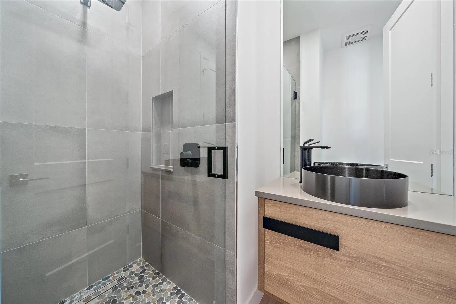 The unique modern architecture seamlessly connects with the serene waterfront, providing an ideal setting for enjoying the best of Florida living. The home features a versatile great room on the first floor, which can serve as an office, third bedroom, or entertainment area, complete with separate entrances for added convenience.