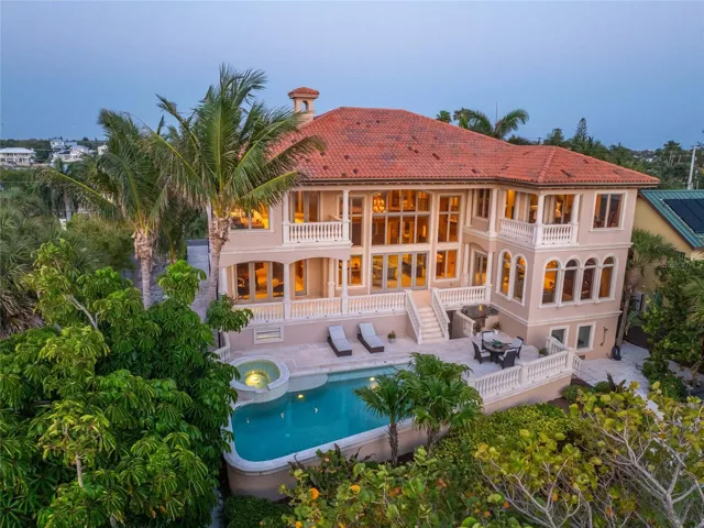 Experience unparalleled luxury on the coveted south end of Casey Key, where this custom Gulf-front estate offers 90 feet of pristine beach frontage, endless views of the turquoise Gulf waters, and the most walkable wide beach on the Key. Built with timeless craftsmanship, the residence spans over 12,000 square feet in total, featuring five bedrooms, six-and-a-half baths, and two spectacular primary suites with sunset balconies, spa-inspired baths, and expansive custom closets. Designed for both elegance and comfort, interiors include a soaring two-story living room, gourmet chef’s kitchen with Wolf, Sub-Zero and Cove appliances, formal dining with Venetian plaster, home theater, gym, and private office with water views. The technology package including automated lighting, programmable blinds, and secure hardwired internet. Outdoors, a Gulf-front saltwater pool and spa, summer kitchen, and private dune walkover create the ultimate coastal retreat. Additional luxuries include a 1,000-gallon generator, elevator, whole-house water filtration, and impact-rated windows and doors. Perfectly situated minutes from boating, marinas, fine dining, and the cultural attractions of Sarasota and Venice, this exceptional Casey Key estate is move-in ready and awaits as your exclusive beachfront sanctuary.