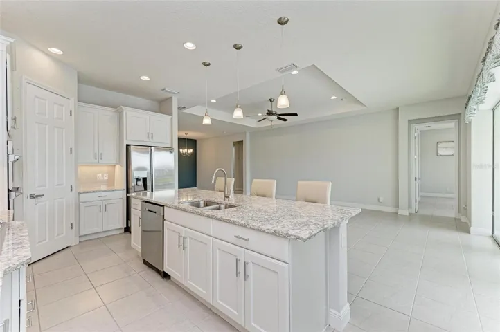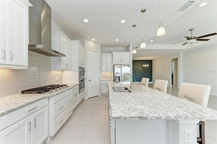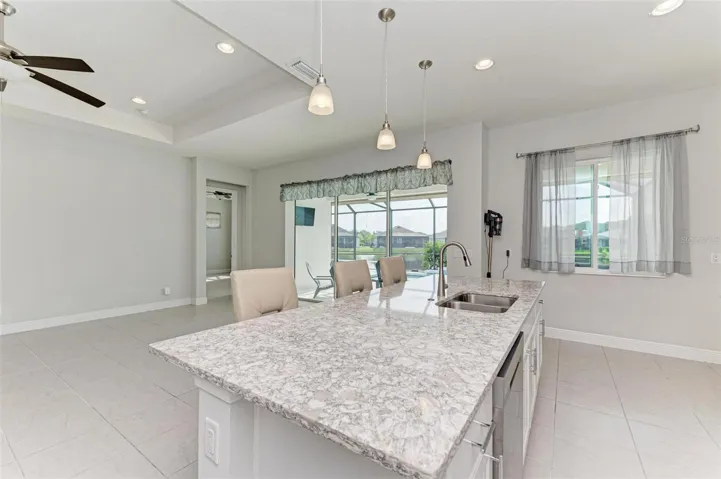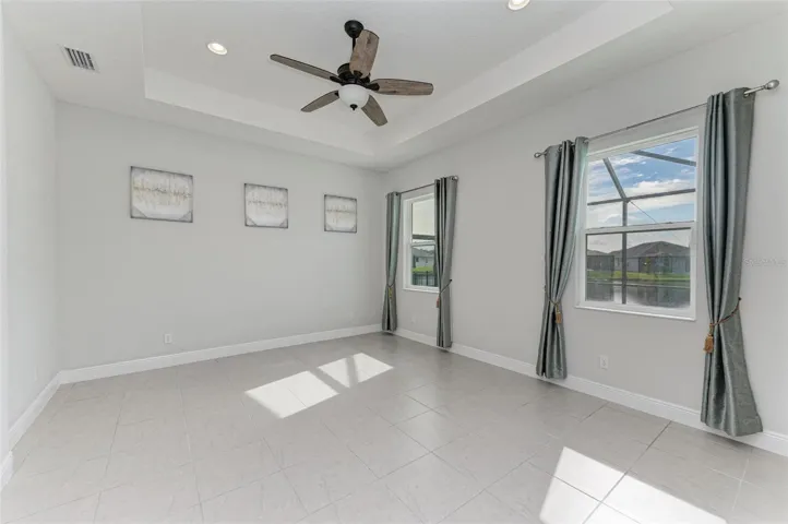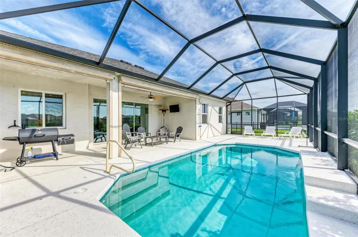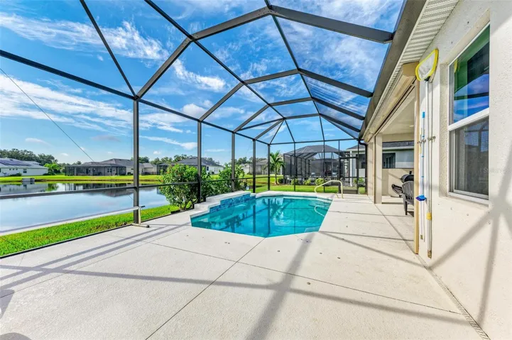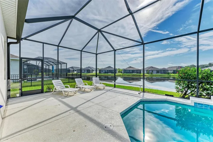One or more photo(s) has been virtually staged. Priced for Immediate SALE!!! Don’t Miss out on this incredible opportunity! 12734 Rainwashed Loop, a true move-in-ready home in the beautiful Cross Creek community, nestled in the heart of Parrish, Florida. This former Medallion model, the “Key West” floor plan, embodies luxury and comfort with its exquisite features and upgrades. Spanning over 2,200 sq ft, this home boasts 4 bedrooms, 3 bathrooms, and a 3-car garage. The open floor plan revolves around the kitchen, designed as the heart of the home, seamlessly connecting the dining room, family room, and outdoor patio bathed in natural light. Culinary enthusiasts will appreciate the gas range, ample cabinetry, and versatile island for meal prep or casual dining. Step inside to discover tray ceilings, an upgraded kitchen package, and the centerpiece—a private salt water, solar heated pool overlooking a premium lot with serene pond views. The extended patio area invites endless entertainment or relaxation under the magical eastern exposure, perfect for unwinding after a long day, or watching your favorite sports team with your outdoor TV. With hurricane fabric on your lanai, and hurricane panels you will feel very secure as well when the storm season hits. The primary bedroom, tucked away for privacy, offers views of the patio and pond, complemented by an ensuite bathroom featuring a walk-in shower, separate tub, and generous counter and closet space. Additional bedrooms are thoughtfully arranged—two sharing a Jack & Jill style bathroom and a fourth bedroom with convenient access to a nearby bathroom. Cross Creek in Parrish, Florida, is renowned for its tranquil ambiance and community amenities, including parks, dog park, walking trails, top of the line resort style Community pool and Splash pad, and proximity to top-rated schools and shopping. Discover the perfect blend of luxury living and suburban charm here in Cross Creek.