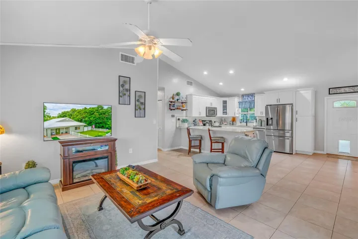 Step inside to discover a spacious, open layout featuring vaulted, insulated ceilings and a chef’s kitchen designed for entertaining—complete with stainless steel appliances, rich wood cabinetry, stunning granite countertops, and a large center island perfect for gathering with friends and family.