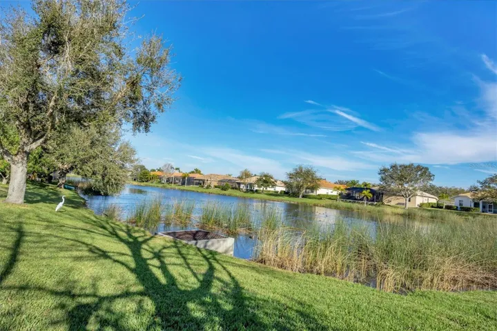 Come live the Florida lifestyle in this split plan, lakefront home with a THREE CAR GARAGE in the desirable gated community of Laurel Lakes. It’s easy living in this ONE LEVEL floor plan with HIGH CEILINGS and MULTIPLE SETS OF 8’ POCKET SLIDERS to the lanai. Tranquil water views visible from all main living areas including the primary bedroom as well as the back guest bedroom. BRAND NEW TILE ROOF INSTALLED NOV. 2024. Pull down attic access in garage for extra storage and a three car garage and paver circular driveway provide ample space for cars. HURRICANE RATED GARAGE DOORS and SHUTTERS for peace of mind and lower insurance costs. An expansive corner lot adds to the privacy and the mature landscaping adds curb appeal. Laurel Lakes is a well-maintained community offering low HOA fees, including a clubhouse with a heated pool, fitness center, pickleball/tennis courts and lots of planned social activities! Located close to everything wonderful Sarasota has to offer. Only 15-20 minutes to Downtown Sarasota, 15 min to University Town Center and Waterside, 5-10 min to hiking in beautiful Celery Fields and Rothenbach park and 25-30 minutes to Lido or Siesta Key beach! Come check it out and make this your new place to call home!