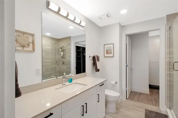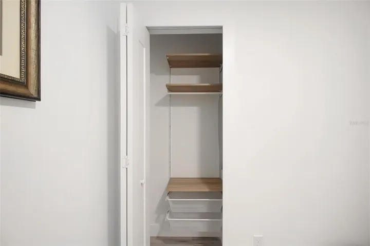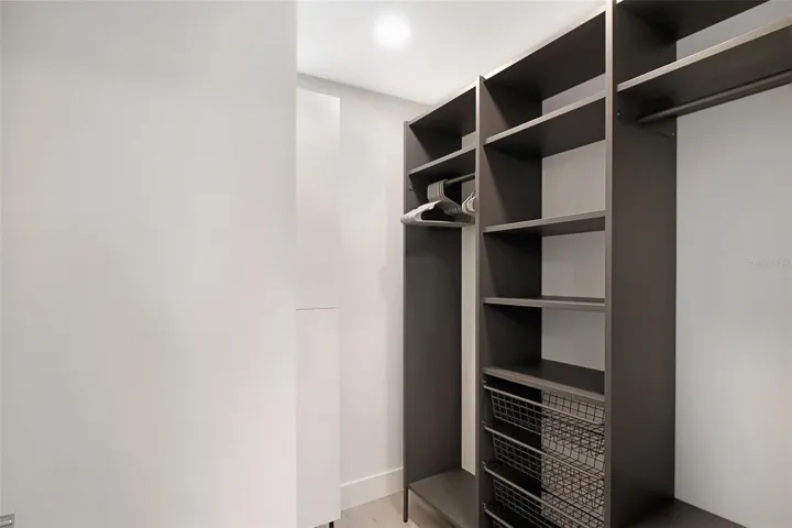 Upon entry, you’ll be greeted by a bright and inviting atmosphere. To the right of the foyer, the primary bedroom features luxury finishes, a spacious closet, and an ensuite bathroom with a large vanity and a stunning walk-in shower. Down the hall, you’ll find a second bathroom with a lovely vanity and a shower/tub combo. The adjacent den, equipped with a Murphy bed, can serve as additional sleeping quarters or a remote office with its convenient desk.