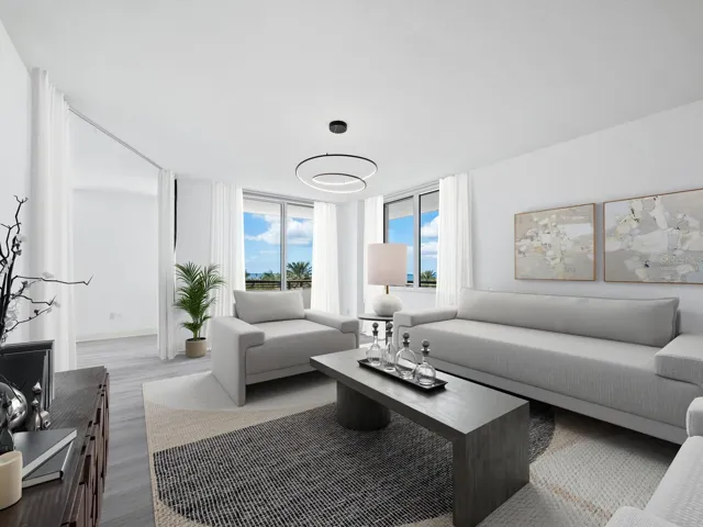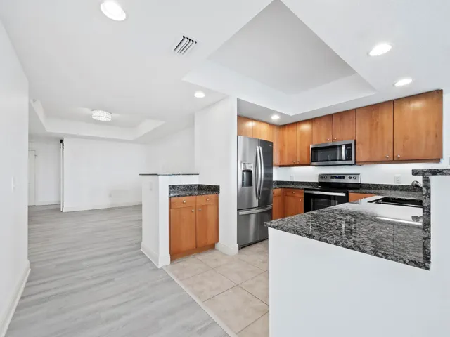 Step into over 1900 square feet of light and bright space and a flexible floorplan with tons of living space. In addition to two dedicated bedrooms, a den could serve as a third bedroom or an office, fitness/music room or library. The kitchen is open to two adjacent living rooms, with views to the wrap-around terrace and beyond, and perfect for entertaining. Notable features include motorized blinds, new appliances, and freshly painted interior.