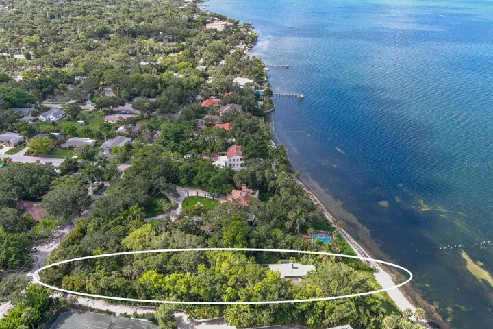 Exotic and extremely private bay front property on the market for the first time in 40 years. In fact, this is only the third time it’s been available in 100 years. Travel back in time to find ancient oaks and large palms, Banyans, and cedars. It’s an idyllic paradise reminding us of why people have come to these shores for millennia. Although this is direct waterfront, most of the land is not in the flood zone creating many possibilities for new structures on or near grade. What is most unique is the 444-foot lot depth. This is almost 4 times that of other bayfront parcels being redeveloped in the area. This extreme distance provides complete privacy from Bay Shore Road and with each adjacent property a multi-acre estate, the feeling of spaciousness and seclusion is complete. Leave the world behind on the long, winding shell drive through tree canopy and lush vegetation. At “the end of the road” is the original homesite on a small bluff directly on and overlooking Sarasota Bay. Your views are of Longboat and Lido Key and out New Pass to the Gulf of Mexico. Looking south you see our bustling little city of Sarasota and the John Ringling Bridge. Enjoy sea breezes in the afternoon and sunsets all year round. A parcel like this is an architects dream providing the size necessary to create what anyone might want, elevation allowing cascading terraces down to the waterfront and multiple, potential “footprints” for accessory dwellings, accessory structures and more. Bay Shore Road has become an eclectic location for the grandest homes in Sarasota. This has led to sales over 10 million dollars and have exceeded 15 million. But you could not put a price on the most spectacular neighbor, Ca’ d Zan. John Ringling’s gilded Venetian palace anchors the neighborhood to the north and downtown Sarasota is just 2 miles south. Other nearby cultural & educational institutions include the Ringling Museum of Art, the Asolo Theater of Performing Arts, the Sarasota Ballet, the Ringling College of Art & Design and our newest amenity, The Bay Park Conservancy redeveloping 53 acres of City waterfront into a world class public park.