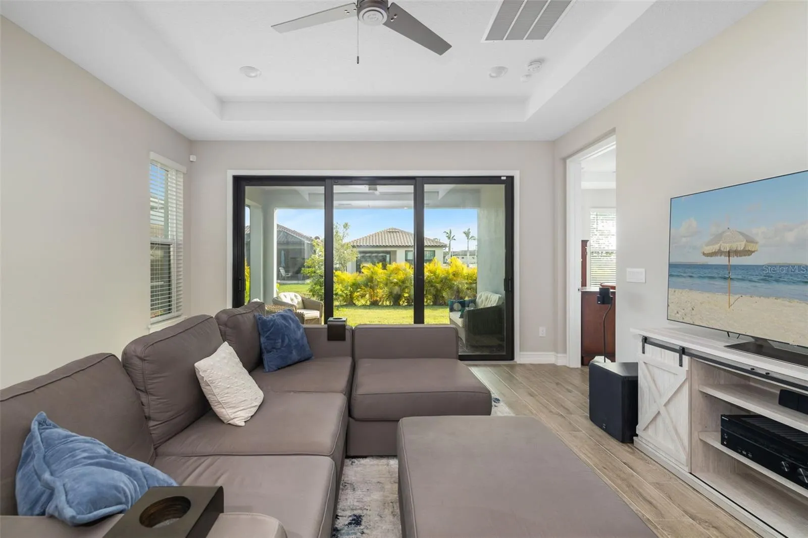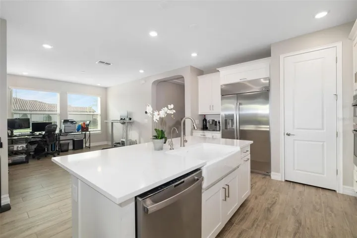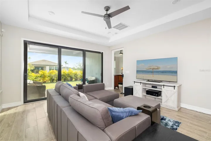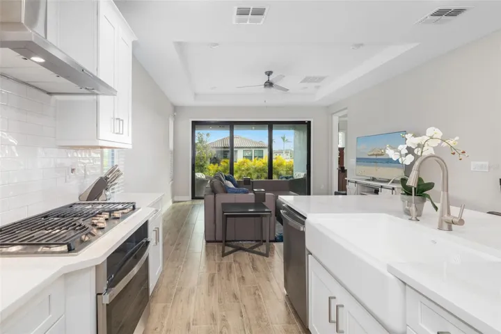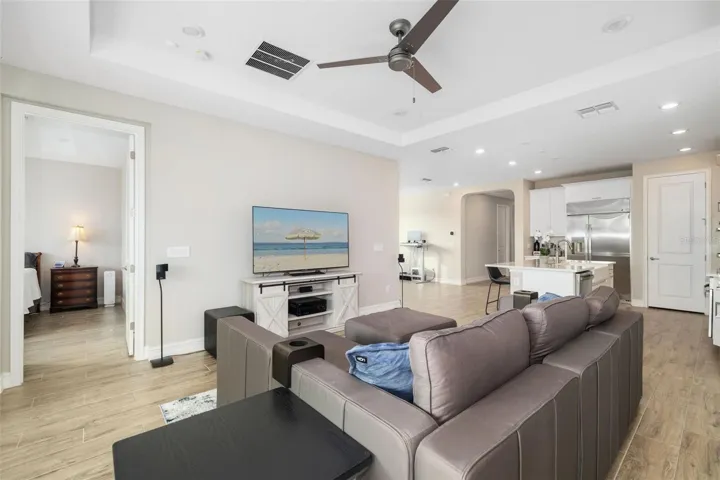 Welcome to your dream home in the gated, waterfront boater’s community of Sanctuary Cove! This property qualifies for a 1% rate reduction if using preferred lender. Inquire for more details. Seller willing to pay first year boat slip rent! This 2022-built, three-bedroom, two-bathroom gem boasts a tile roof, offering modern luxury and peace of mind with no flooding or hurricane damage. Conveniently located just two blocks from the marina, this home provides easy access to boat slip leasing and waterfront enjoyment. The open-concept design features a spacious living area, a chef’s kitchen with quartz countertops and a coveted gas stove, and a flexible space perfect for dining or a home office/den. The primary suite includes a spa like bathroom with a walk-in shower and double sinks for added convenience, while the covered patio offers a serene outdoor retreat with areca palms and room to add a pool. Enjoy maintenance free, resort-style living with no need to take care of your lawn; landscaping is handled for you! The community boasts a stunning waterfront pool with breathtaking views, surrounded by beautiful palm trees that create a true resort-like ambiance, as well as a relaxing hot tub. Additional amenities include a fitness center, a clubhouse, a private beach where you can play volleyball, opportunities to go kayaking, and the freedom to drive your golf cart around. Centrally located near Bradenton, Sarasota, Tampa, and St. Pete, this waterfront home is an unbeatable value in this community. Schedule your tour today!