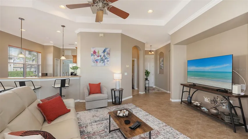 VENETIAN GOLF AND RIVER CLUB..Postcard views! This single family home boasts 3 bedrooms, 2 bathrooms with indoor/outdoor living. Enjoy stunning views of the Sunset, Water and Golf views as you unwind in your own screened in patio with a private pool and hot tub after a round of golf at The Venetian Golf and River Club. The ensuite primary bedroom, conveniently located on the main-floor, (King size bed) it is expansive and luxurious with a separate sitting area. In addition to the convenience of the private bathroom (walk-in shower), you will find ample closet space to let your wardrobe breathe. After any local excursions, you can return to the comforting appeal of your perfect home, in the place where the low-traffic streets are lined by sidewalks. Indulge in an abundance of world-class amenities for residents of this community, including a fitness center, tennis courts, pickelball courts, tiki bar, 24/7 security, and fine dining. Take a refreshing dip in the resort-sized pool/spa, lap pool, or delight in the 70-acre nature preserve and the boardwalk leading to the Myakka River. If golf is your passion, you will have plenty of time to take the opportunity to join a championship 18-hole golf course all set in an unbeatable location just minutes from pristine beaches and downtown Venice Island shopping. Call Today!!