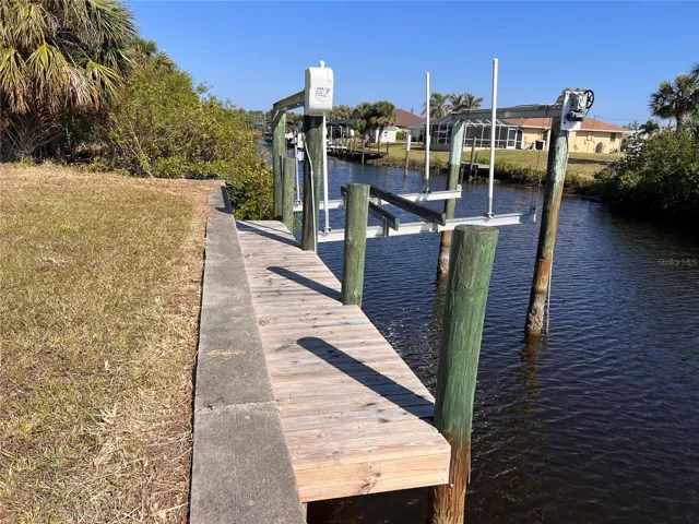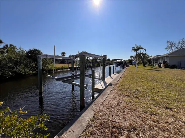 Motivated Sellers! Bring an offer! Located in a highly desirable neighborhood, this spacious 1/4-acre lot offers direct access to Charlotte Harbor, making it an ideal location for boating enthusiasts. Lot features 80 feet of waterfront with a concrete seawall and a private wooden dock equipped with 10,000 lb. Boat Lift, so you’ll have all the amenities needed for secure and hassle-free docking right in your backyard. The boat lift ensures easy and safe storage for your watercraft, offering quick and convenient access to the water at all times. The lot dimensions are 80′ x 120′, ample space for your custom dream home, while the prime waterfront location provides unrestricted views of the water, nature, and picturesque sunsets. If you’re seeking the perfect combination of convenience and quick waterfront access, this Gulf front lot on Sweetbay Waterway, is an absolute must-see. Whether you’re looking to cruise the coastline, enjoy fishing in the Gulf, or dock at nearby waterfront dining spots, this property provides direct access to scenic canals that lead straight to the Gulf waters. With only one bridge before heading to sea, you can be out on the open water in minutes. Charlotte Harbor, Boca Grande, Cayo Costa, & Myakka River are all a boat ride away. Property is located close to Shopping, Restaurants, Hospitals, Farmers Markets, and more. Don’t miss the chance to secure this exceptional piece of real estate—the Florida lifestyle awaits you. Seller is Motivated, bring an offer!