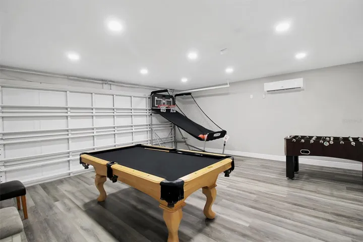 Garage is not accessible for guests use. It has been converted to a game room. Guests can park in the driveway. Fireplace is NOT for guests use.