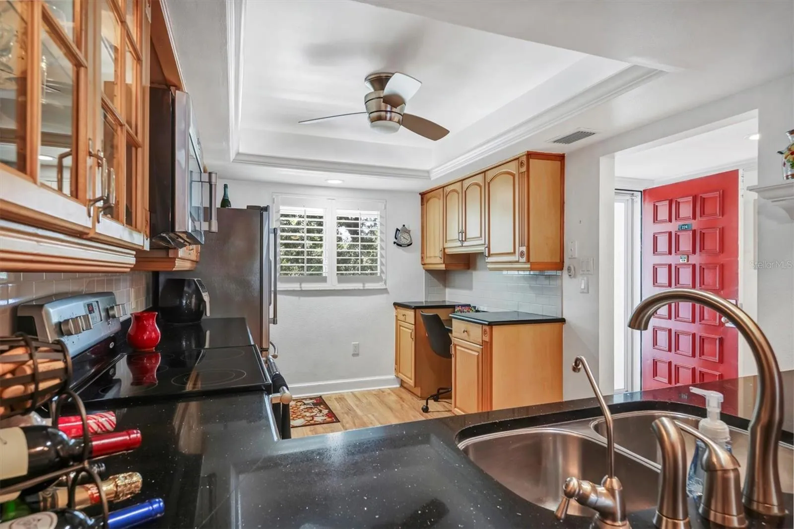 Move-in-ready and fully furnished 2-bedroom, 2-bath condominium in a secured elevator building close to Sarasota’s key amenities. This second-floor residence offers approximately 1,084 sq ft of single-level living with a spacious 9′ × 14′ screened lanai overlooking the community pool. Recent improvements include hurricane-impact windows and a new roof completed last year, providing peace of mind and energy efficiency. The interior features an updated kitchen and bathrooms, wood-style flooring, and an in-unit laundry room for added convenience.