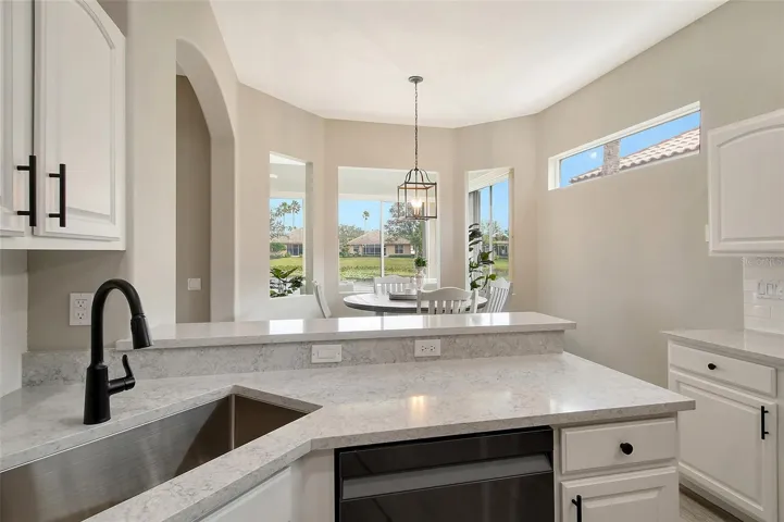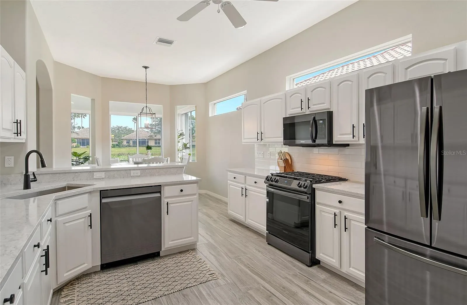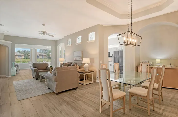Immediate occupancy available at Palisades of Palmer Ranch! Step into this elegantly remodeled, turnkey-furnished home in the highly sought-after Palisades of Palmer Ranch. Offering 2,228 square feet of open living space, this three-bedroom, two-bath home is a perfect blend of style and functionality. The entire home features stunning porcelain tile flooring imported from Spain, beautifully paired with furnishings that harmonize with the wall and floor colors. The thoughtfully designed interior overlooks a peaceful lake bustling with vibrant birdlife, creating a serene and picturesque backdrop. The kitchen is a showstopper, featuring crisp white cabinetry, quartz countertops and premium Samsung slate stainless steel appliances, including a five-burner natural gas range. Perfect for entertaining or everyday living, this remodeled space is as practical as it is beautiful. Safety and peace of mind come standard, with impact glass on the east side of the home and hurricane shutters installed in 2012. Situated 20 feet above sea level in Zone X, the home does not require flood insurance. Additional features include: exterior painted in 2023, new AC system installed in 2023 and repiped in 2014 for worry-free living. The oversized garage provides ample storage. Located in the meticulously maintained, maintenance-free community of Palisades, this home is free from CDD fees and perfectly positioned at the northwest corner of Palmer Ranch. Enjoy proximity to Sarasota’s vibrant lifestyle, including its world-class dining, shopping and cultural attractions. This home is more than a must-see — it’s a must-have. Schedule your showing today and experience the best of Sarasota living!