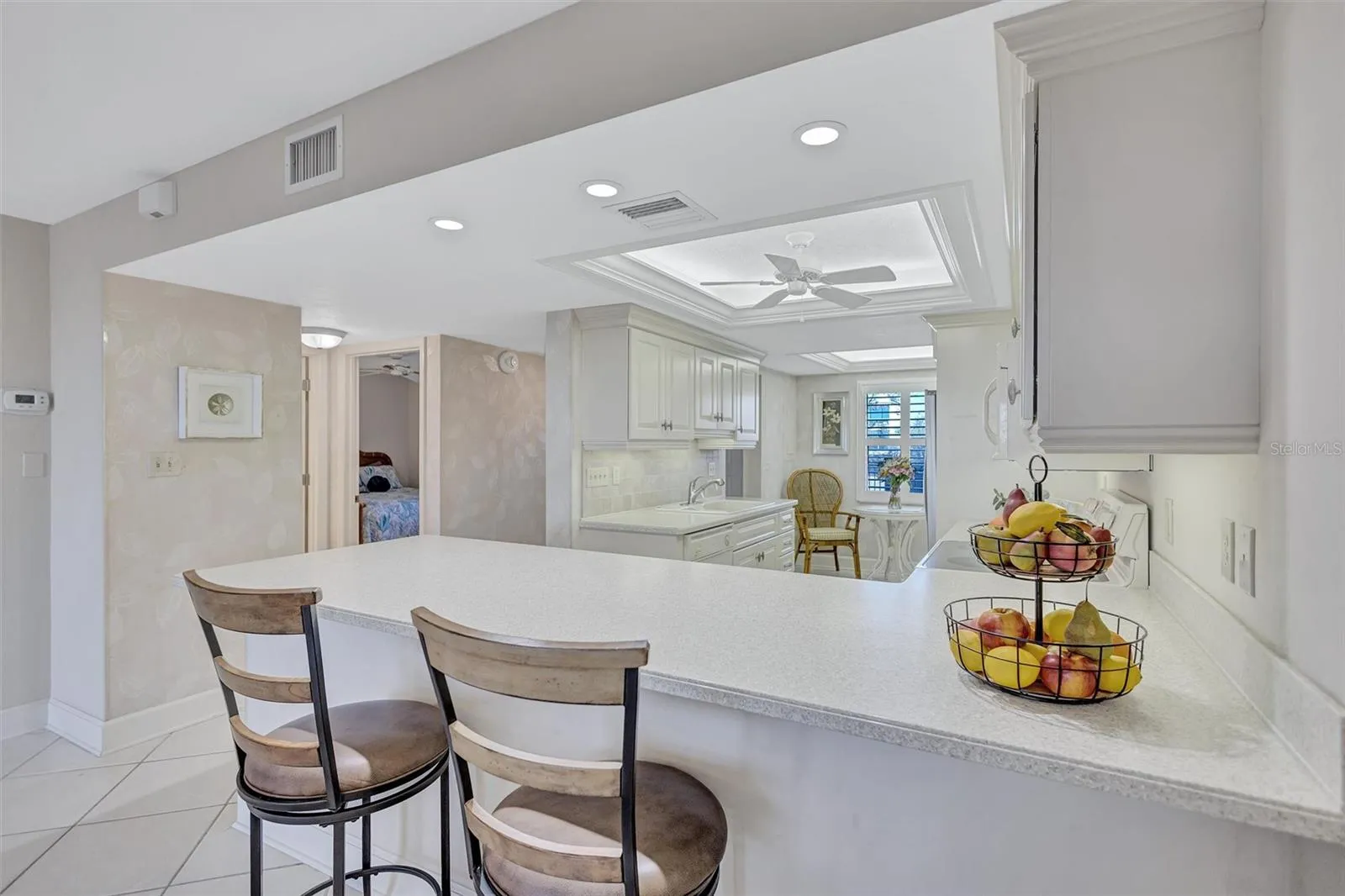 The TURNKEY FURNISHED layout includes a light-filled open kitchen with eat-in nook (perfect as a dinette or office), two spacious walk-in closets, separate laundry room, and generous storage throughout. Recent community updates give peace of mind: milestone inspections complete, all cast iron plumbing replaced in 2024, and new clubhouse roof and landscaping nearing completion, with no special assessments.