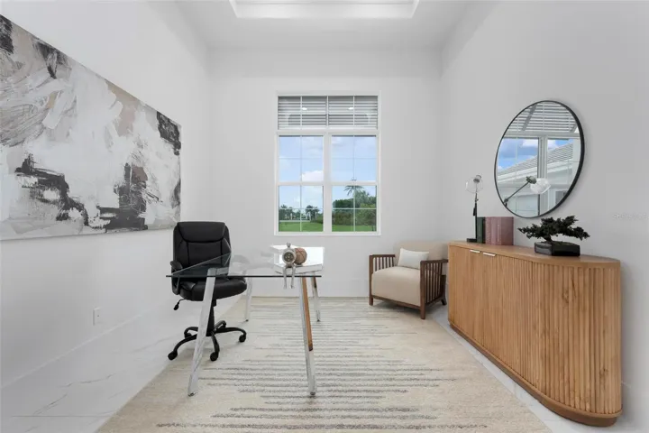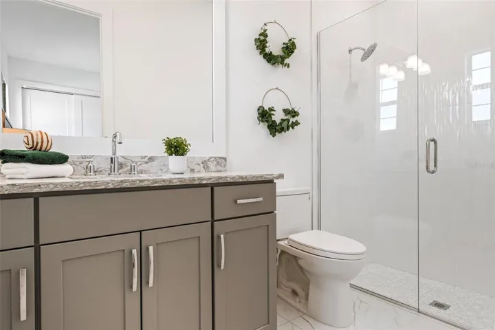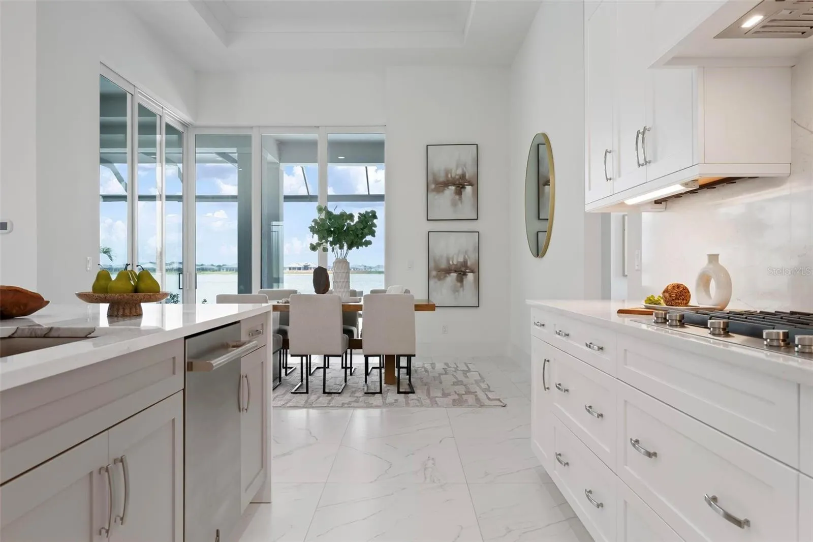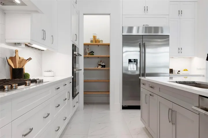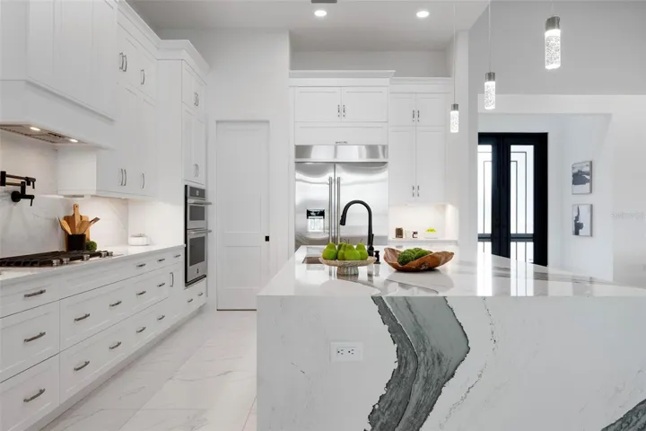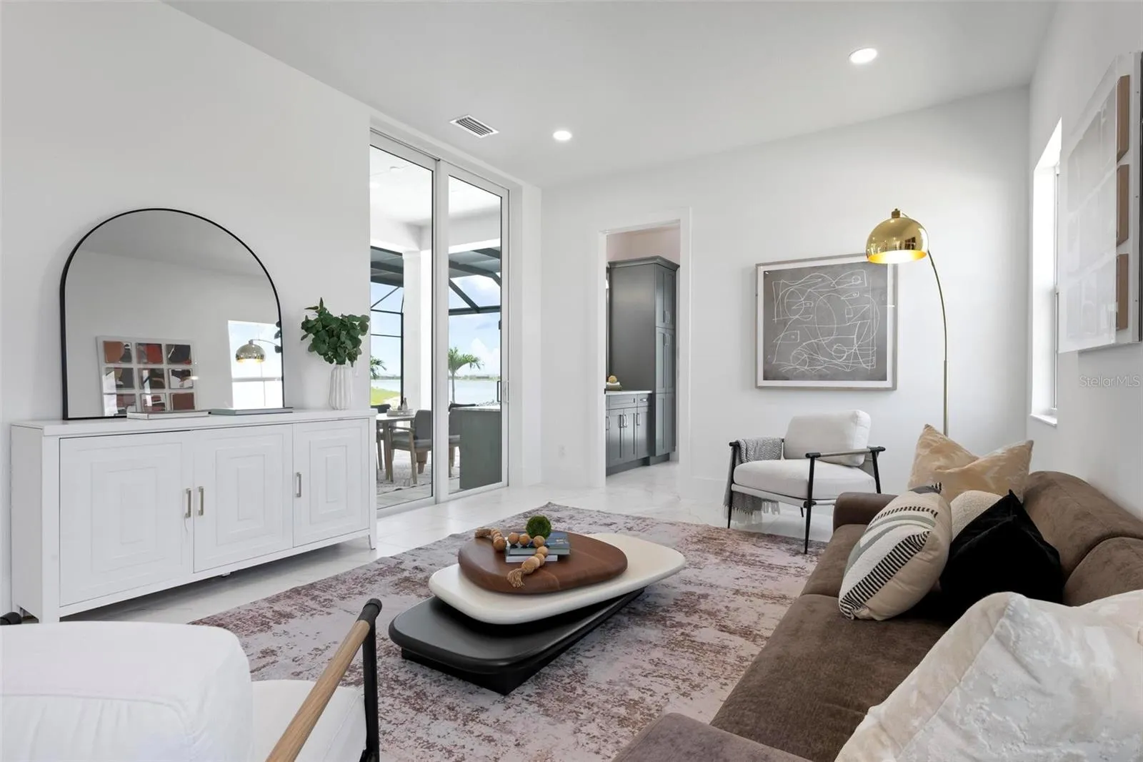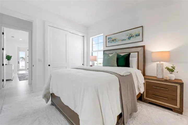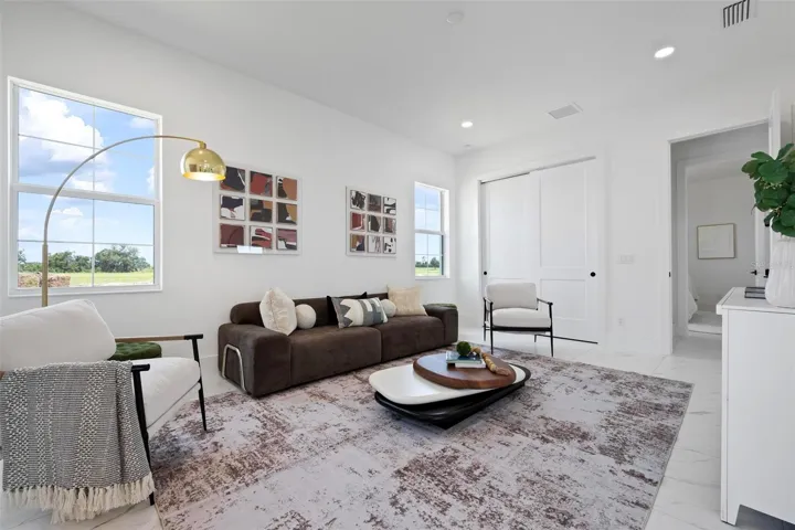 Recently staged and completed Madison 2 by Stock Luxury Homes with expansive lake views, why wait for the builder, when you can move in now? Experience the pinnacle of elegance in this modern luxury home, where breathtaking lake views and superior craftsmanship converge. Designed for those who value sophistication, this property offers a harmonious blend of timeless style with state-of-the-art functionality. Spectacular lake views frame the serene beauty of the lake, drawing natural light and picturesque views into almost every room. Equipped with premium Jenn Air appliances, sleek countertops, and custom cabinetry, this kitchen is a culinary dream. Master suite includes two ample walk-in closets with wood shelving, expansive views of the pool and lake beyond, and the master bath will wash you in luxury with its large roam-in shower, free standing tub, and clean crisp finishes. Contemporary finishes, high ceilings, and an open floor plan create a light and airy ambiance which is perfect or both relaxation and entertaining. Seamless access to the expansive pool area will enhance your connection to nature while providing the ideal setting for hosting gatherings or enjoying quiet moments. Located in the emerging Wild Blue community, recreation facilities include tennis courts, a fitness center, and fishing access along with miles of sidewalks. Schedule your private tour today and discover this perfect blend of tranquility and modern living.