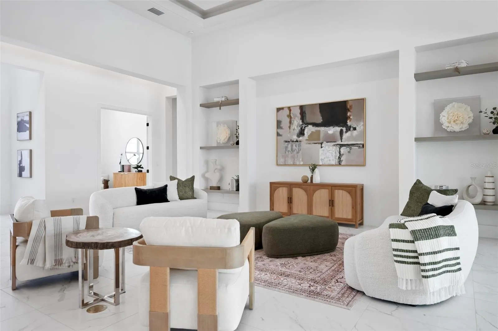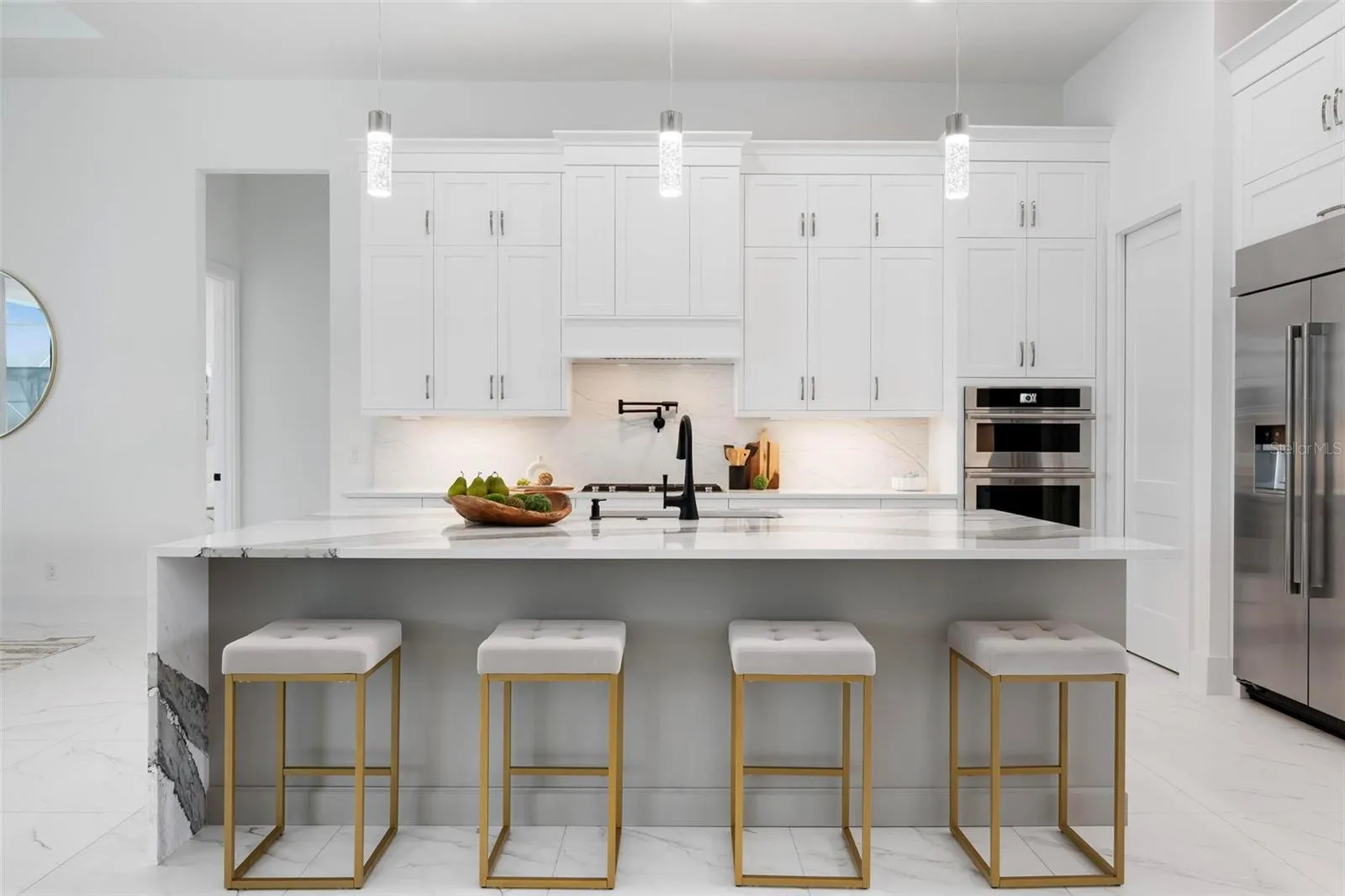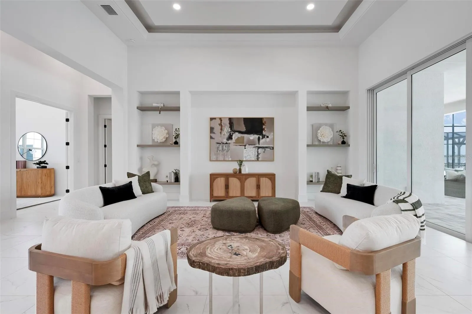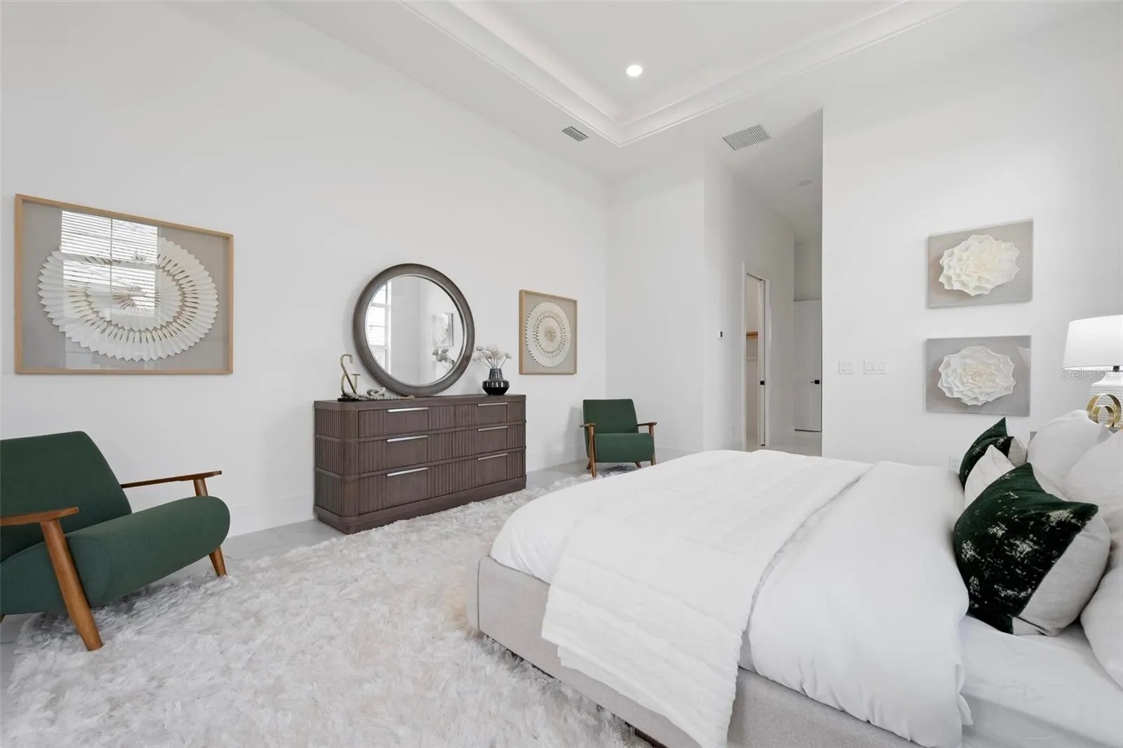 Recently staged and completed Madison 2 by Stock Luxury Homes with expansive lake views, why wait for the builder, when you can move in now? Experience the pinnacle of elegance in this modern luxury home, where breathtaking lake views and superior craftsmanship converge. Designed for those who value sophistication, this property offers a harmonious blend of timeless style with state-of-the-art functionality. Spectacular lake views frame the serene beauty of the lake, drawing natural light and picturesque views into almost every room. Equipped with premium Jenn Air appliances, sleek countertops, and custom cabinetry, this kitchen is a culinary dream. Master suite includes two ample walk-in closets with wood shelving, expansive views of the pool and lake beyond, and the master bath will wash you in luxury with its large roam-in shower, free standing tub, and clean crisp finishes. Contemporary finishes, high ceilings, and an open floor plan create a light and airy ambiance which is perfect or both relaxation and entertaining. Seamless access to the expansive pool area will enhance your connection to nature while providing the ideal setting for hosting gatherings or enjoying quiet moments. Located in the emerging Wild Blue community, recreation facilities include tennis courts, a fitness center, and fishing access along with miles of sidewalks. Schedule your private tour today and discover this perfect blend of tranquility and modern living.