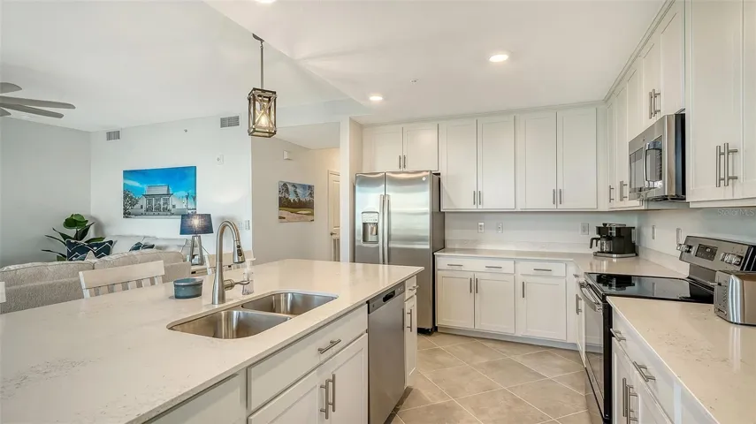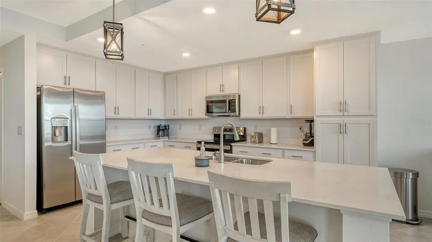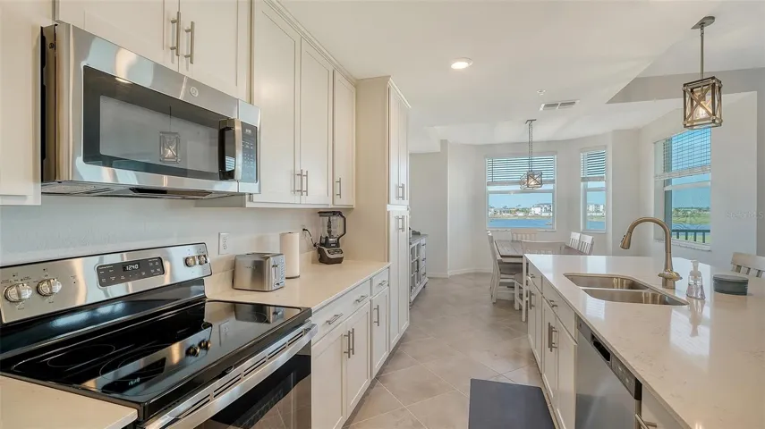Gorgeous “Birkdale” 3rd floor, 2-bedroom, 2-bathroom condo. Located within the gated golf Community of Wellen Park Golf & Country Club. Take in the lovely views of the fairway and the lake as you enter the condo which boasts a clever open floor plan with a dream kitchen located at the heart of the condo. Large island for cooking and entertaining and new stainless-steel appliances is featured with lots of cabinet space. Master suite features a King bed and an en-suite bath with tile walk-in shower. Guest room features a queen bed with full bath next-door. This lovely condo is well stocked and offers a soothing coastal color palette. Come and experience Florida resort style living at its best in this premier golf community. You’ll enjoy hours of fun as you entertain guests, enjoy meals, morning coffee and sunsets on your private lanai as you watch the golfers navigate the new Gordon Lewis 18-hole championship course. This building is located in closest proximity to all of the amenities on property. Enjoy the fantastic resort-style amenities this Community offers; TIKI BAR, FITNESS CENTER, RESORT STYLE SWIMMING POOL WITH POOLSIDE SERVICE, 3 SATELLITE POOLS, TENNIS AND PICKLE BALL, BOCCE BALL, GYM AND MORE)! Golf Membership available for purchase. The Wellen Park community offers a brand-new downtown area with a huge lake, walking trails and wonderful shops, events, live music, local eateries, farmers market. Take in a Baseball game or many of the other events offered at the Cool Today Atalanta Braves Training Stadium just minutes away. Located within 20-minutes of 3 spectacular Gulf beaches. Escape the ordinary in this resort style community! Call for a showing today! Easy access to I-75, local shopping and dining and all Venice has to offer.