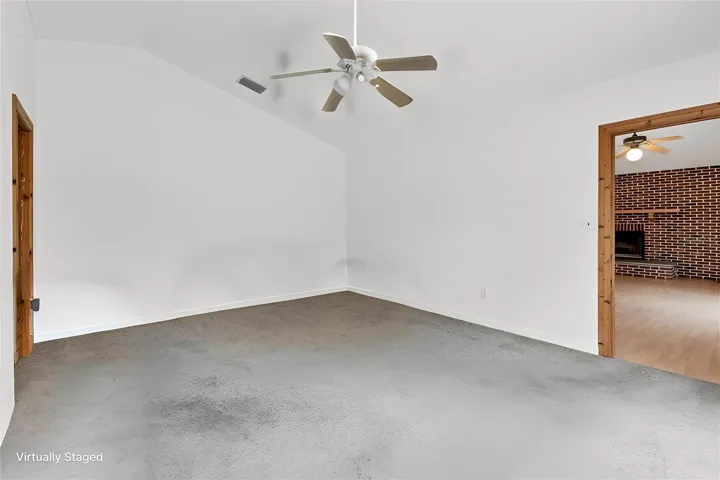 The exterior has been beautifully painted, providing an inviting first impression. Step inside to find vaulted ceilings in the living room, which create an open and airy atmosphere—perfect for both relaxation and entertaining. The kitchen is a chef’s delight, featuring custom real wood cabinets and elegant granite countertops, ready for you to personalize.