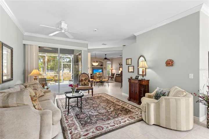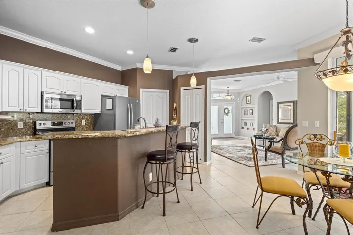 Discover this beautifully maintained split-bedroom home featuring an open living area, perfect for entertaining. You have to see this 3-Bedroom 2 Bath Home with generous outdoor living space! Enjoy granite countertops and stainless steel appliances in the kitchen, upgraded lighting fixtures and fans, plantation shutters, lots of built in features. The master suite boasts a walk-in shower, two closets, and a slider opening to an oversized lanai. Lanai can also be accessed through the living area making it a great space to unwind and relax. Guest bedrooms share a well-appointed bathroom. Backs up to serene green space with mature landscaping for added privacy. Recent updates include a new roof (2023) and on demand hot water heater! Home is to be sold turnkey!! This sought-after home won’t last long—call today to schedule your viewing!