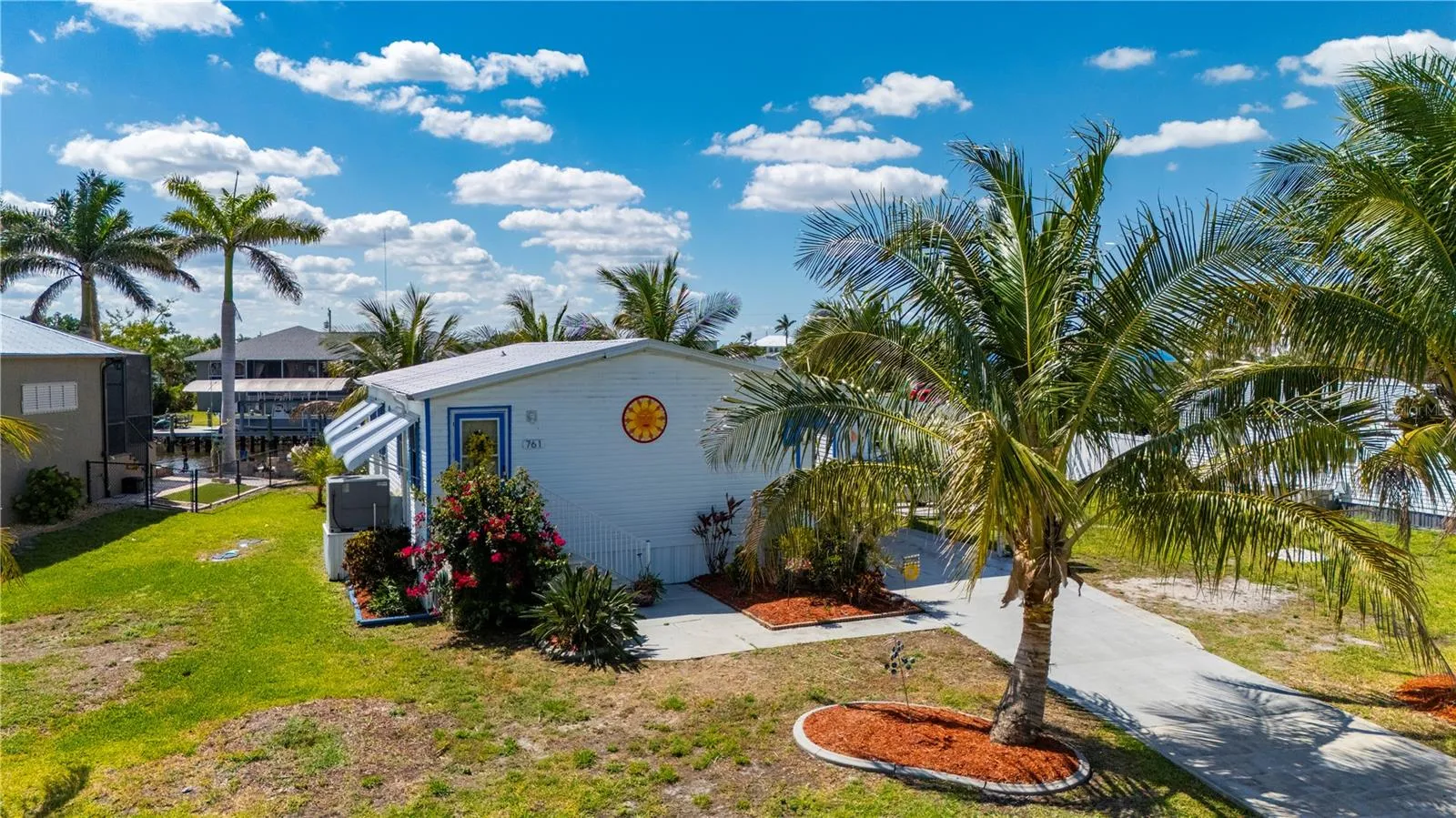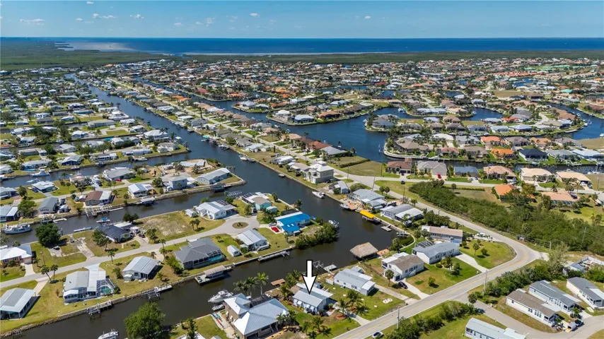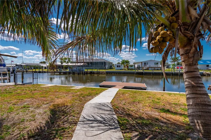 Welcome to your own slice of paradise, a well-maintained 2 bedroom, 2 bath waterfront home that perfectly blends the relaxed Florida Keys lifestyle with the convenience of small-town living. Nestled in a quiet, tropical setting, this property offers the best of both worlds: the peaceful ambiance of coastal living, with easy access to everyday essentials like shops, restaurants, schools, and healthcare facilities just minutes away. The home is set on sailboat-access water that leads directly to Charlotte Harbor and the Gulf Islands, making it a dream for boating enthusiasts and nature lovers alike. Coconut palms and lush, tropical landscaping surround the property, creating a serene, resort-style atmosphere. Framed beneath the canopy of these mature palms, a charming tiki hut offers the perfect outdoor retreat for entertaining guests or simply unwinding with a cool drink in hand. Enjoy the convenience of a private swim spa with a resistance feature-ideal for early morning exercise or a soothing evening soak. A floating dock equipped with a fish cleaning station makes it easy to cast a line and enjoy fresh catches right from your backyard. For those who enjoy DIY projects or gardening, a spacious metal shed offers ample storage for tools, boating equipment, or hobby supplies. Inside, the home is equally inviting. The open-concept layout is perfect for entertaining, while the kitchen features wine refrigerator, granite countertops complementing the rich wood cabinetry, and plenty of counter space for cooking and gathering with friends. Large windows fill the living space with natural light, enhancing the warm, coastal feel throughout. A carport with insulated roof provides covered parking with enough room for both your vehicle and a boat, adding even more function and value to this already exceptional property with no deed restrictions or HOA. Located just minutes from downtown Punta Gorda, you’ll enjoy quick access to the weekend farmers market, scenic waterfront parks, and miles of bike trails. The renowned Fishermen’s Village is also nearby, offering a variety of quaint boutiques, waterfront dining, boat rentals, and year-round events. If you’ve been dreaming of a Florida Keys-inspired lifestyle, complete with boating, fishing, and palm-lined tranquility-but don’t want to sacrifice the conveniences of in-town living-this is a rare opportunity you won’t want to miss.