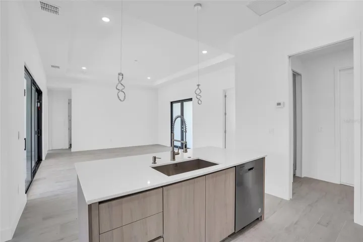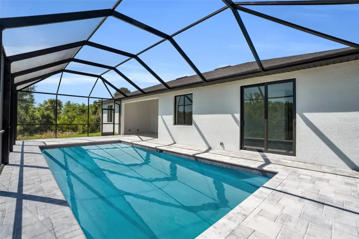 Discover modern living in this 3 bedroom + den home boasting 1726 sq ft. Sleek and stylish, this home features an open concept layout, porcelain tile throughout, high ceilings and impact doors and windows. Retreat to the spacious backyard that features a covered lanai with a pool perfect for large gatherings and fun. Be the first to occupy this new construction home in the relaxed, waterfront community of South Gulf Cove. Last month deposit is waived for tenants with a credit score of 650 or higher. Renters Insurance Required. Lease to own option available.