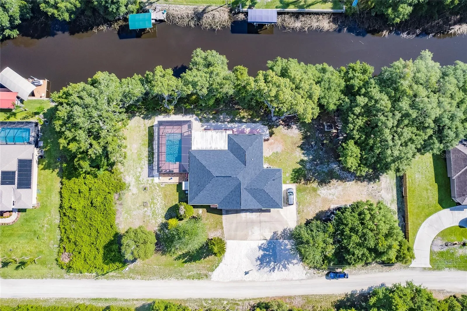 One or more photo(s) has been virtually staged. 4 Bedroom – 3 Bath Home, plus Home Office and a whole lot of space. This Waterfront Pool Home has access to the Peace River, Charlotte Harbor and the Gulf! Private Boat Launch, Space to park your toys, even Electric Hook-Up for an RV. Whether you’re into Fishing or Boating you’ll have it all with this one! Home features 2 Primary Bedrooms. Peace of mind includes a Roof replacement in 2022, the Pool and Enclosure installed new in 2020, there’s a Manual Generator, as well as Dual A/C systems. All this with a $30,000 price improvement.